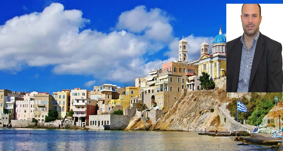 Τριήμερο αργίας του Αγίου Πνεύματος και αποφασίζω να επισκεφθώ για πρώτη φορά το νησί της Σύρου. Το λιμάνι που ως τότε το έβλεπα μόνο από το πλοίο, κυρίως το Νεώριο και τις γερανογέφυρές του, συνεχίζοντας για τον επόμενο προορισμό στις Κυκλάδες. Σάββατο πρωί φθάνω στο λιμάνι της Ερμούπολης με πολύ ζέστη και αφού αφήνω τα πράγματα στο ξενοδοχείο μπροστά στο λιμάνι κατευθύνομαι προς την οδό Ερμού, με τα πλακόστρωτα στενά γύρω γύρω. Ήδη από τον παραλιακό δρόμο ξεχωρίζει το επιβλητικό Δημαρχείο της πόλης, έργο του Ερν. Τσίλερ, που θεωρείται ένα από τα ωραιότερα κτίρια της χώρας, που το περιβάλλουν ολόγυρα μεγάλοι φοίνικες. Λίγο πιο μπροστά, το άγαλμα του Μιαούλη με τα κανόνια του και γύρω, παλαιά κτίρια μιας άλλης εποχής, που συνδέονται με τη σημερινή πραγματικότητα με εικόνες, όπως τα κοινόχρηστα ποδήλατα μπροστά στην Πλατεία Μιαούλη και οι κατασκευές για τα τραπεζοκαθίσματα που ίσως χαλάνε την ιδεατή αρχιτεκτονική εικόνα που έχει αυτή η πλατεία, με το κτίριο του ΟΤΕ δίπλα, αλλά και το υπέροχο Ελληνικό Καφενείο. Κατεβαίνω τον εμπορικό δρόμο της Πρωτοπαπαδάκη με τα μαγαζιά και κάθομαι για καφέ στο Μέγαρον, ένα παλαιό καφέ στο ισόγειο ενός εντυπωσιακού τριώροφου νεοκλασικού, που συχνάζουν οι ντόπιοι, με έπιπλα και καθρέφτες της παλιάς εποχής, ενώ διαβάζω το τοπικό περιοδικό, το Πανόραμα Σύρου, με συνεντεύξεις ανθρώπων του πολιτισμού για τη Σύρο. Φεύγω από το Μέγαρον και πάω προς το Δημαρχείο, λίγο πριν τις δύο το μεσημέρι, προτού κλείσουν οι πόρτες και χάνομαι στην αρχιτεκτονική γοητεία του Τσίλερ. Ανεβαίνω τα σκαλιά και ανοίγω την κεντρική βαριά πόρτα, βλέποντας τον παλιό δήμαρχο Σύρου, τον Δ. Βαφιαδάκη, να κάθεται στην καρέκλα του, ένα κομψό άγαλμα και συνεχίζω να ανακαλύπτω τους διαδρόμους του δημαρχείου. Τις καρέκλες του καφενείου στην εσωτερική αυλή στα μαυρόασπρα πλακάκια, που είναι σαν σκάκι, το γλυπτό με το παιδί και το δελφίνι, τις ξύλινες πόρτες στα γραφεία που συστεγάζονται τα δικαστήρια, την γυάλινη οροφή που αφήνει να μπαίνει το φως του ήλιου απλόχερα και μέσα από το τζάμι, την εντυπωσιακή αίθουσα του δημοτικού συμβουλίου, με τους πίνακες και τις προσωπογραφίες στους τοίχους, ενώ λίγο πριν φύγω, θαυμάζω την παλιά άμαξα της πριγκίπισσας Σίσσυ στο ισόγειο του κτιρίου. Φεύγοντας από το δημαρχείο, μεσημέρι με πολύ ζέστη και θέλοντας να κάνω την πρώτη βουτιά, ανεβαίνω δεξιά προς τη θάλασσα και διακρίνω στο βάθος τα δύο καμπαναριά του Αγίου Νικολάου με τον γαλάζιο τρούλο και μπαίνω στην αριστοκρατική συνοικία της Ερμούπολης, τα Βαπόρια. Παλιά αρχοντικά που πολλά είναι ανακαινισμένα και άλλα περιμένουν να γίνουν, με φοίνικες στους κήπους και άλλα με φανάρια στους τοίχους τους και καλαίσθητα κάγκελα στις αυλές, πεντάστερα μικρά ξενοδοχεία. Το κτίριο της Εθνικής Τράπεζας, το Μέγαρο Πετριτζή, η παλιά Νομαρχία Κυκλάδων με τους φοίνικες μπροστά, το πεντάστερο Πλόες με την αυλή του και τις μπουκαμβίλιες, με τη θέα στον Αγ. Νικόλαο και τα αρχοντικά καπετανόσπιτα στα βράχια, όπως το Σύρου Μέλαθρον, στη μοναδική εφοπλιστική συνοικία, τα Βαπόρια. Κάνοντας βουτιά στα πεντακάθαρα νερά από την τσιμεντένια προβλήτα με τις σκάλες στην άκρη της θάλασσας, δίπλα από τα Αστέρια και με θέα τα αρχοντικά πάνω στους βράχους, φεύγω για το κέντρο περνώντας τον θεατρικό όμιλο Σουρή, την πλατεία Βαρδάκα, το θέατρο Απόλλωνα με τις τρεις πόρτες και παρακολουθώ 