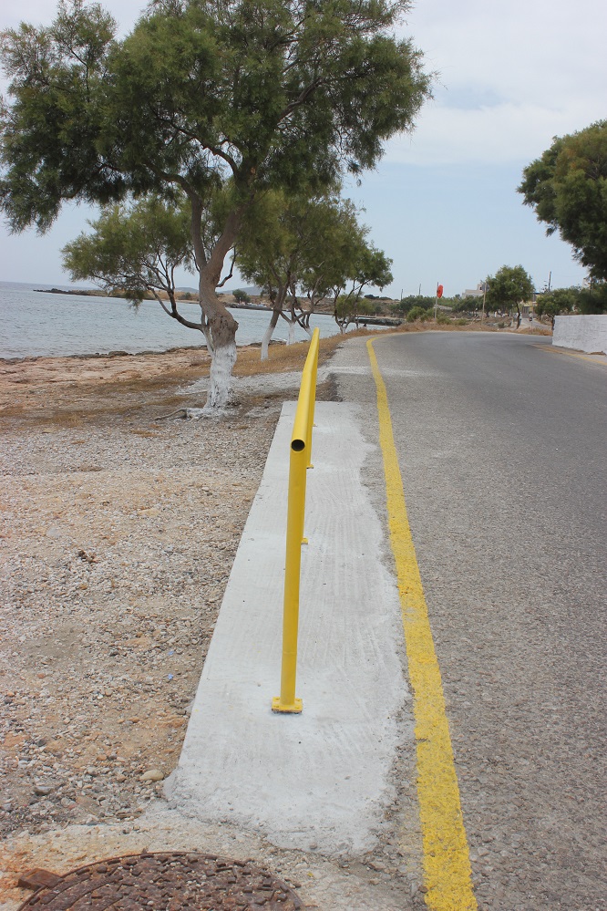 Άξια λόγου ενέργεια είναι και η ρίψη ειδικού μπετόν και η εγκατάσταση προστατευτικού κιγκλιδώματος σε επικίνδυνο σημείο (στροφή) στο τέλος του παραλιακού τμήματος, του οποίου γίνεται συστηματική χρήση, με σκοπό την αποτροπή ατυχήματος από διερχόμενο όχημα, ενώ ακόμη, θα πρέπει να αναφερθούν και οι ενισχυτικές πινελιές στις διαγραμμίσεις σε όλο το μήκος της παραλιακής οδού. Τέλος, δεν μπορεί να παραληφθεί η αναφορά στις καινούργιες ξύλινες ενημερωτικές πινακίδες που τοποθετήθηκαν σε κομβικό σημείο της παραλίας, ώστε να εξυπηρετείται το σύνολο των λουόμενων και των ΑΜΕΑ όσον αφορά στη χρήση των προσφερόμενων υπηρεσιών της Αζολίμνου.