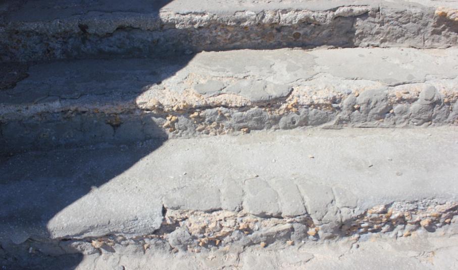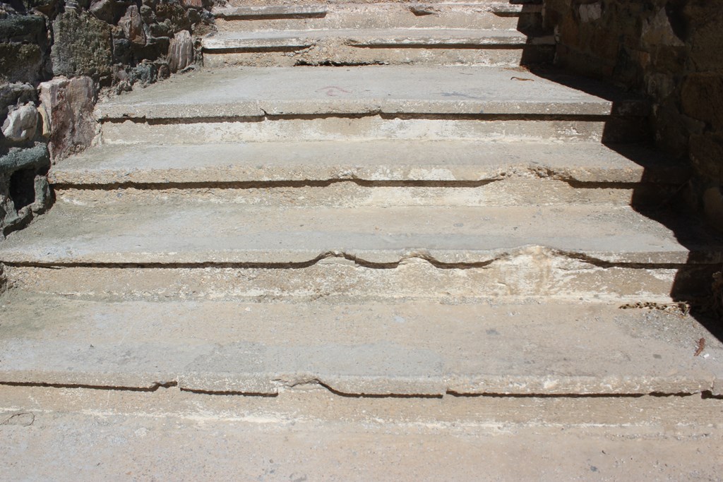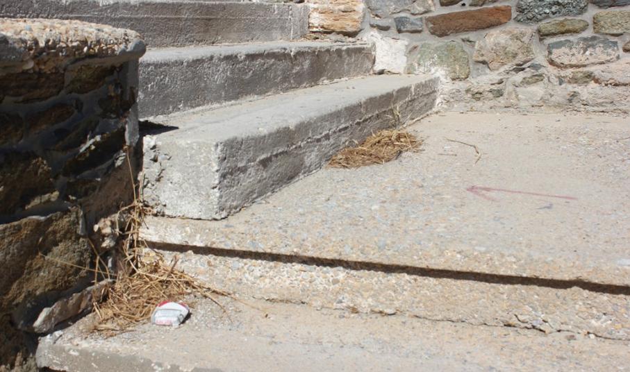 Ωστόσο, τα σκαλοπάτια από τσιμέντο παρουσιάζουν εκτεταμένες φθορές, καθώς στα περισσότερα εξ’ αυτών κομμάτια από σκυρόδεμα έχουν αποκολληθεί, με αποτέλεσμα να υπάρχει μεγάλος κίνδυνος πρόκλησης ατυχήματος, ιδιαίτερα για πολίτες μεγαλύτερης ηλικίας.