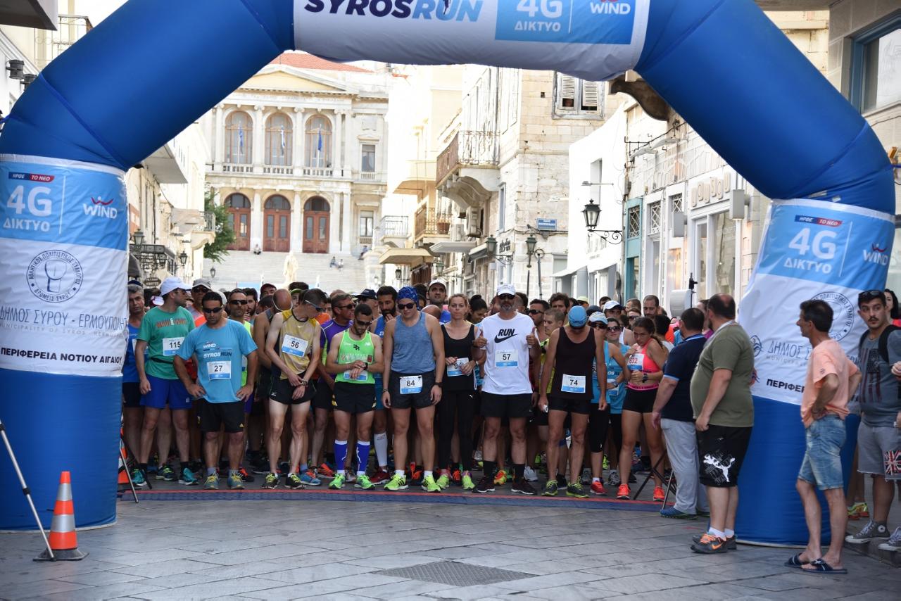 Κάθε προσδοκία ξεπέρασε ο αγώνας Syros Run, αφού οι συμμετοχές ξεπέρασαν τις 1200 και ο κόσμος έδωσε βροντερό παρών στους αγώνες. Μικροί και μεγάλοι έλαβαν μέρος σ' αυτή την πολύ μεγάλη αθλητική διοργάνωση καθώς το Syros Run ήταν για... όλους. Η αρχή των αγώνων έγινε με την εκκίνηση των 2,5 χιλιομέτρων και στη συνέχεια την... σκυτάλη πήραν οι δρομείς των 10χλμ. Μετά από μερικά λεπτά ξεκίνησαν και οι αθλητές των 5 χιλιομέτρων ώστε να υπάρχει μία σειρά στην αψίδα του τερματισμού. Οι Συριανοί για ακόμη μία φορά απέδειξαν ότι... διψούν για άθληση και πως έχουν ανάγκη από χώρους που να μπορούν να προπονηθούν. Από εκεί και πέρα αρκετοί ήταν οι τοπικοί φορείς που πήραν μέρος, όπως ο Δήμαρχος Σύρου-Ερμούπολης Γιώργος Μαραγκός, αντιδήμαρχοι, αλλά και δημοτικοί σύμβουλοι. Ακόμη το παρών στους αγώνες έδωσε και ο γνωστός σεφ Αλέξανδρος Παπανδρέου, ο οποίος σύμφωνα με τα όσα είπε, έμεινε ευχαριστημένος τόσο από τον αγώνα όσο και από τις ομορφιές του νησιού.