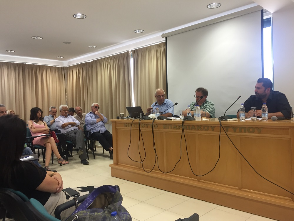 Η ημερίδα για τα προβλήματα του περιφερειακού Τύπου που πραγματοποιήθηκε στους Άγιους Πάντες του Δήμου Αποκορώνου των Χανίων, διοργανώθηκε από το Τμήμα Δημοσιογραφίας και Μ.Μ.Ε. του Αριστοτέλειου Πανεπιστημίου Θεσσαλονίκης σε συνεργασία με το Ινστιτούτο Επαρχιακού Τύπου (Ίδρυμα “Αγία Σοφία”), παρόντος του Γενικού Γραμματέα Ενημέρωσης και Επικοινωνίας, Λευτέρη Κρέτσου.