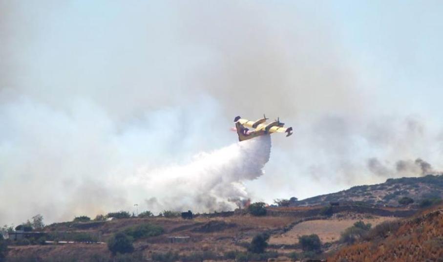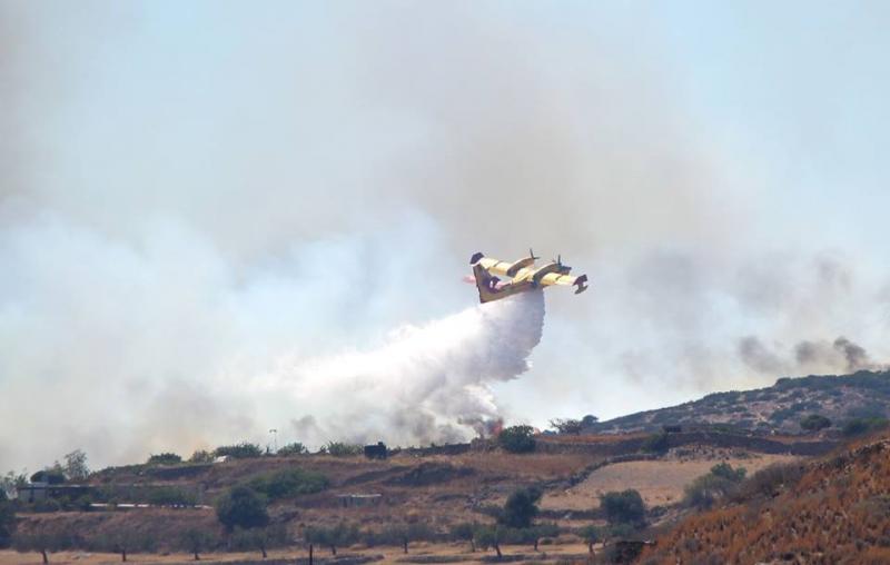 Στο εξαιρετικής σημασίας έργο των δύο Canadair, τα οποία όμως αντιμετώπισαν σοβαρές δυσκολίες, λόγω των ισχυρών ανέμων στον ανεφοδιασμό των ειδικών δεξαμενών, με αποτέλεσμα να αναγκάζονται σε πτήσεις μέχρι τη θαλάσσια περιοχή των διπλανών νησιών, ώστε να βρουν κατάλληλο σημείο, την κατάσβεση της πυρκαγιάς υποβοήθησε καθοριστικά ένα πυροσβεστικό ελικόπτερο, το οποίο επίσης επιχειρούσε, ανεφοδιάζοντας τη δεξαμενή νερού από τη θαλάσσια περιοχή του Κινίου, πραγματοποιώντας περισσότερες ρίψεις σε λιγότερο χρονικό διάστημα.