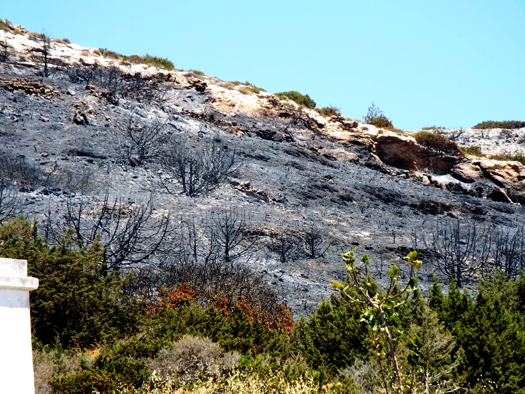 Μόλις μερικές ώρες, μετά την καταστροφική πυρκαγιά, που συνέχιζε να καίει επί τρεις ημέρες στις περιοχές από τον Βόλακα και την Αγ. Βαρβάρα, έως τον Πάγο και τον Δανακό, η Σύρος μετρά εκατοντάδες στρέμματα καμένες εκτάσεις, εντός των οποίων, ευτυχώς, δεν υπήρξε καμία κατοικία, ενώ επίσης δεν κινδύνευσαν ανθρώπινες ζωές.