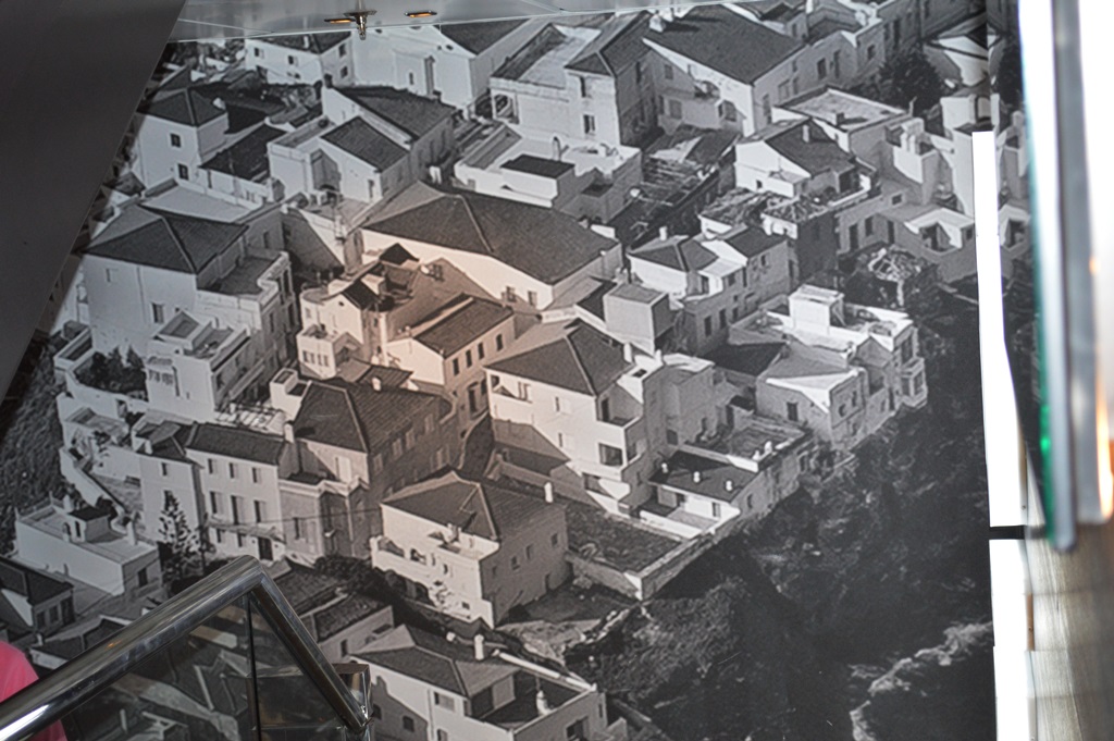 Αξίζει να σημειωθεί, πως τους τοίχους των αεροπορικών χώρων κοσμεί ταπετσαρία με τον ναυτικό χάρτη των Κυκλάδων, ενώ τα σαλόνια του πλοίου, έχουν πάρει τις ονομασίες τους από ξακουστούς τόπους της Άνδρου, αλλά και των Κυκλάδων, με το σαλόνι της πρώτης θέσης, να έχει το όνομα «Άχλα». Τα σαλόνια διαθέτουν μοντέρνα και ποιοτικά έπιπλα, με προσεγμένη διαρρύθμιση, ενώ ακόμη και τα φωτιστικά, διαθέτουν φινέτσα. Στο χώρο της τραπεζαρίας στην πρώτη θέση, μπορεί να διακρίνει κανείς και διακοσμητικές λεπτομέρειες, με την προσθήκη και δύο ηλεκτρονικών διακοσμητικών τζακιών. Οι πληροφοριακές πινακίδες είναι διακοσμημένες με φωτο-ταπετσαρίες, οι οποίες απεικονίζουν διάφορα νησιωτικά τοπία, κυρίως από την Άνδρο. Στα εξωτερικά σημεία των μπαρ υπάρχει επένδυση από μάρμαρο, ενώ προτομές αρχαίων προσωπικοτήτων, προστατευμένες από τζάμι, κοσμούν τους διαδρόμους, που οδηγούν από τα σαλόνια στο κατάστρωμα, το οποίο κι αυτό με τη σειρά του, διαθέτει ξύλινο πάτωμα, προσεγμένες σκάλες με μπρούντζινες κουπαστές, καθώς και μοντέρνα καθίσματα.