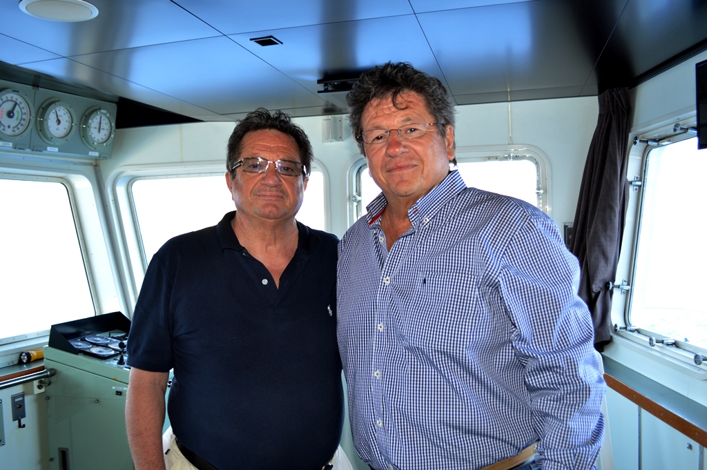 Εν πλω και ευρισκόμενοι μέσα στο νέο πλοίο – “κόσμημα”, SUPERFERRY, μίλησαν στην εφημερίδα, οι ιδιοκτήτες της ακτοπλοϊκής εταιρείας Golden Star Ferries, Δημήτρης και Γιώργος Στεφάνου.