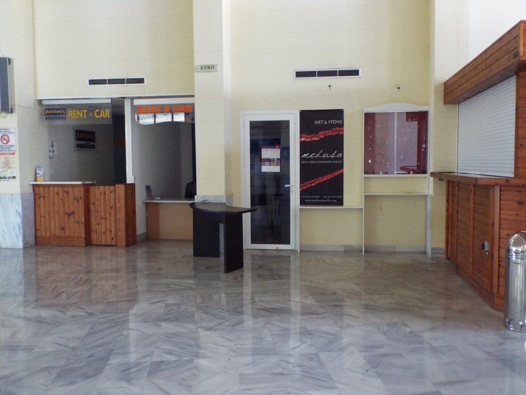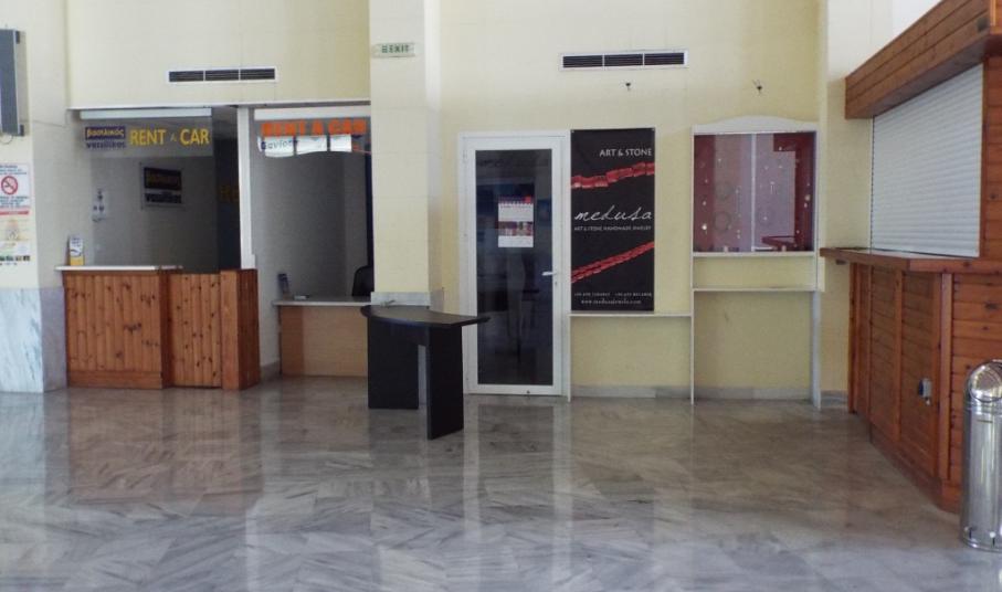 Το κιόσκι για αγορές τροφίμων, αναψυκτικών και άλλων χρήσιμων αντικειμένων, παραμένει ανενεργό, καθώς επίσης και οι χώροι για την εγκατάσταση καταστημάτων. Παράλληλα, πρόσφατα αφαιρέθηκαν και οι αυτόματοι πωλητές, με αποτέλεσμα, κατά την αναμονή τους επιβάτες και συνοδοί, να μη μπορούν να βρουν εντός της εγκατάστασης, ούτε καν νερό.