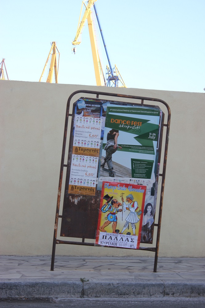 Οπτική ρύπανση συνιστούν οι σιδερένιοι πίνακες ανακοινώσεων σε πολλά σημεία δημόσιων χώρων εντός της Ερμούπολης, καθώς οι επιφάνειές τους έχουν “ντυθεί” με στρώματα από αφίσες, ανακοινώσεις κι ενημερωτικά φυλλάδια ετών... επάνω στα οποία προστίθενται κι άλλα σε καθημερινή βάση, διαμορφώνοντας μία συνολικότερη εικόνα αντιαισθητικού χαρακτήρα.