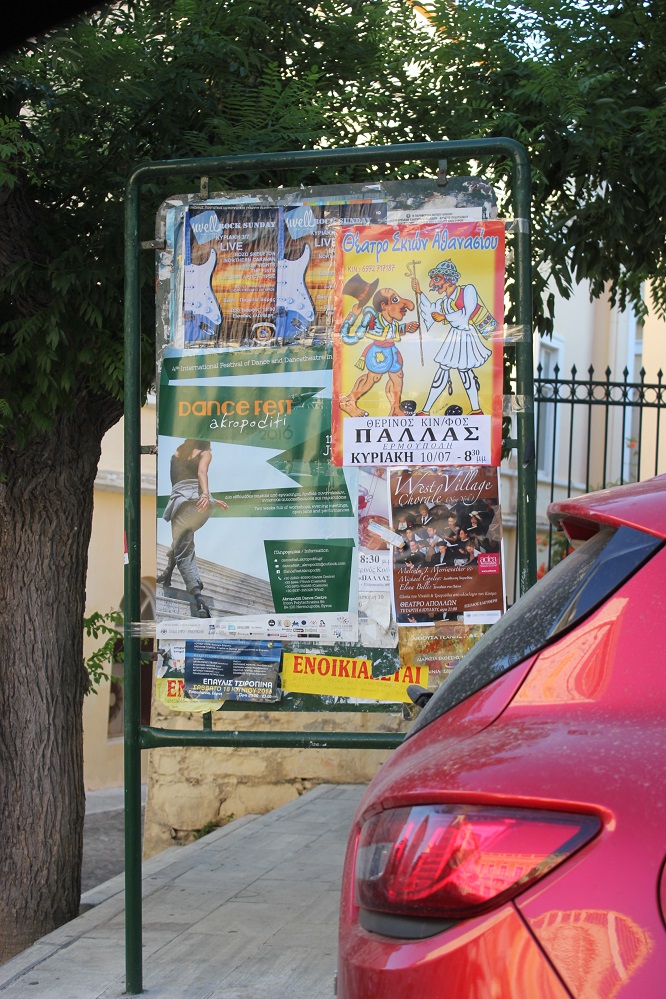 Σε κατάλληλα σημεία που δεν αποσπούν την προσοχή των οδηγών επί των πεζοδρομίων του κέντρου αλλά και των ευρύτερων περιοχών της Ερμούπολης, έχουν τοποθετηθεί εδώ και χρόνια και παραμένουν οι πίνακες ανακοινώσεων προκειμένου να αποφεύγεται η εκτεταμένη αφισορύπανση σε άσχετα τμήματα ή και σε κτίρια της πόλης, οι οποίοι ωστόσο, δεν μπορούν να “ανταποκριθούν” στο ρόλο τους, αφού στην επιφάνειά τους βρίσκονται δεκάδες χαρτιά κι αφίσες.