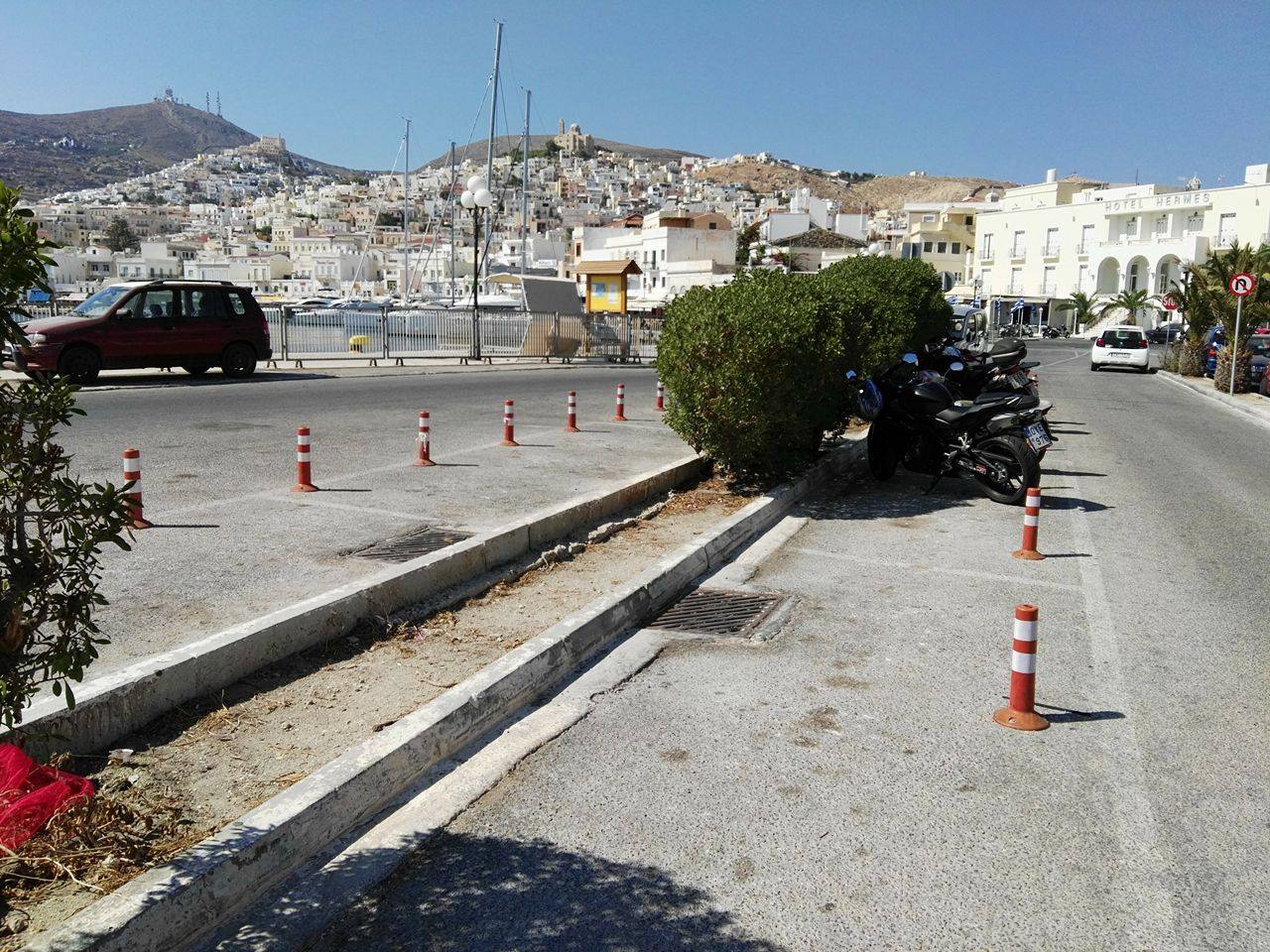 Παρ’ όλα αυτά, όπως έδειξε η μέχρι στιγμής εφαρμογή του μέτρου, οι προβλεπόμενες θέσεις στάθμευσης μοτοσυκλετών, οι οποίες οριοθετήθηκαν με πορτοκαλί πλαστικά κολονάκια, αφενός υπήρξαν σπάνια κατειλημμένες στο σύνολό τους, ενώ αφετέρου, δημιούργησαν έντονο πρόβλημα, στη στάθμευση των αυτοκινήτων εντός του χώρου, δεδομένου, ότι ακόμη και όταν ο χώρος ήταν εξολοκλήρου και καθ’ όλη τη διάρκεια της ημέρας ελεύθερος για στάθμευση τετράτροχων και πάλι οι οδηγοί έρχονταν αντιμέτωποι με την έλλειψη διαθέσιμων θέσεων, κατά τους καλοκαιρινούς μήνες.