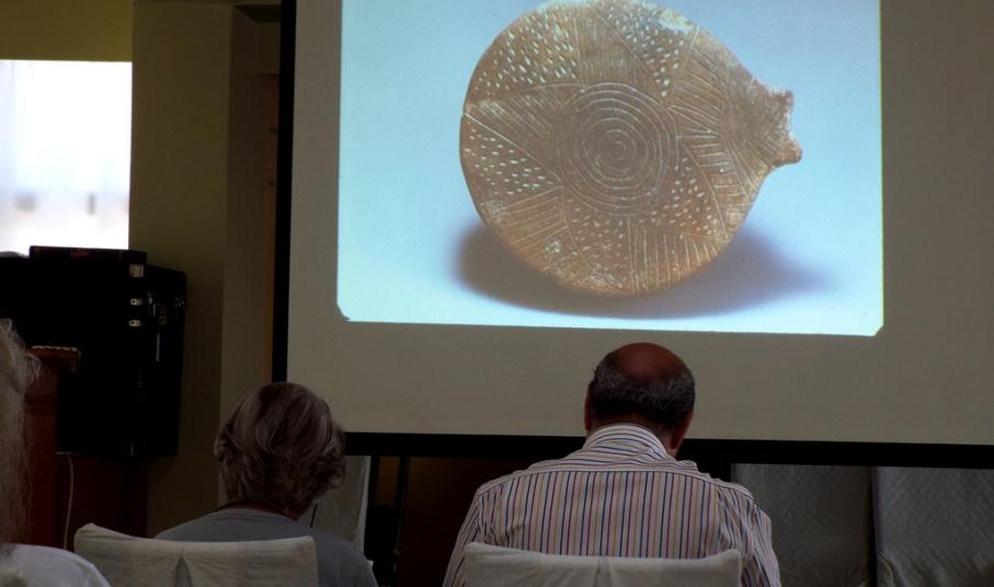 Η αρχαιολόγος μίλησε για τα περίφημα Συριανά κάτοπτρα, με τον πλούσιο χαρακτό και γραπτό διάκοσμο, τα ειδώλια, αφιερώματα των Κυκλαδιτών στους νεκρούς, από άφθαρτο πάλλευκο παριανό μάρμαρο, τα οποία «αποτελούν τη μεγαλύτερη και πολυτιμότερη προσφορά του Κυκλαδικού πολιτισμού στην τέχνη», όπως επίσης και για την κατασκευή εργαλείων, από πέτρα, κόκκαλα ζώων ή οψιδιανό, εκ της Μήλου.