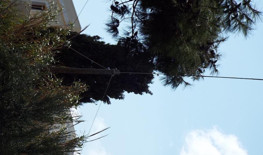 Αξίζει να σημειωθεί, πως επιπλέον, το πεύκο περιστοιχίζεται από καλώδια τις ΔΕΗ, σε όλες τις κατευθύνσεις, γεγονός, που υποδηλώνει, πως υπάρχει επιπλέον κίνδυνος, πρόκλησης ατυχήματος, με την κίνηση των κλαδιών του δέντρου, από δυνατές ριπές ανέμου, ιδιαίτερα σε συνθήκες υγρασίας.