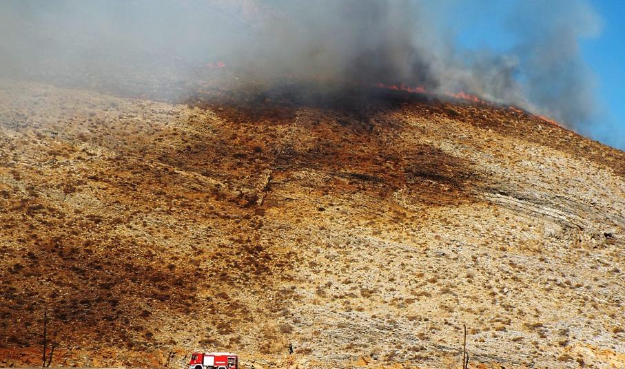 Οι μνήμες των ημερών του Ιουλίου ξύπνησαν για τους κατοίκους του νησιού, με την πυρκαγιά που ξέσπασε το πρωί της Τρίτης, στη θέση «Κοράκι» της Ερμούπολης, λαμβάνοντας αστραπιαία έκταση, σε όλο το λόφο, κατακαίγοντας συνολικά περίπου 350 στρέμματα χορτολιβαδικής έκτασης.