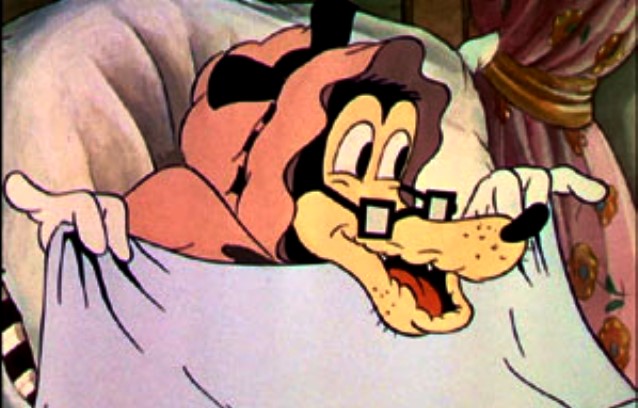 Και “ο Κακός ο Λύκος” έχει πλέον φορέσει τη νυχτικιά της γιαγιάς, το σκουφί του ύπνου και έχει πέσει τ’ανάσκελο, παριστάνοντας την αβοήθητη γιαγιούλα.