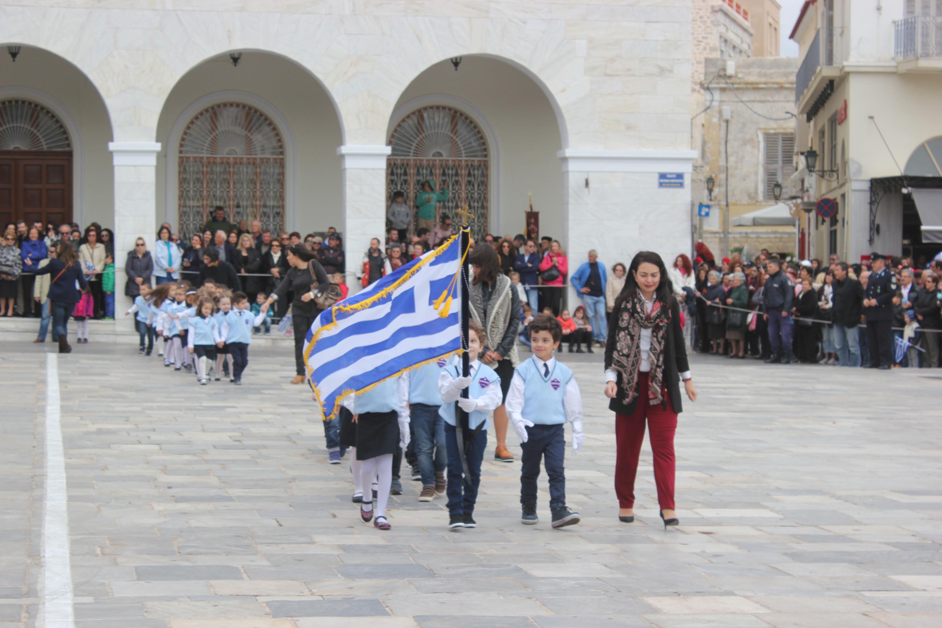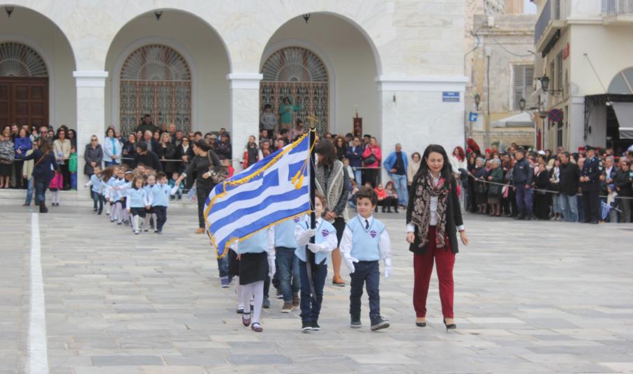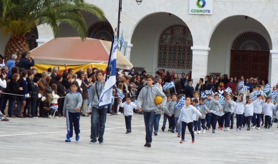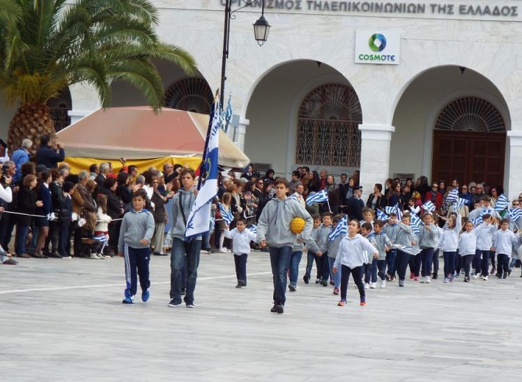 Το ηρωικό «ΟΧΙ» τίμησαν οι μαθητές όλων των βαθμίδων της Α’βάθμιας και Β’βάθμιας εκπαίδευσης, οι σπουδαστές της Ακαδημίας Εμπορικού Ναυτικού, της ΕΠΑΣ Βοηθών Νοσηλευτών, μέλη Συλλόγων και εκπρόσωποι πολιτιστικών και αθλητικών φορέων του νησιού.