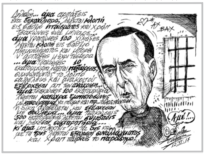 Σκίτσο του Τάκη Χάλαρη με θέμα: «Σαν παλιό σινεμά»