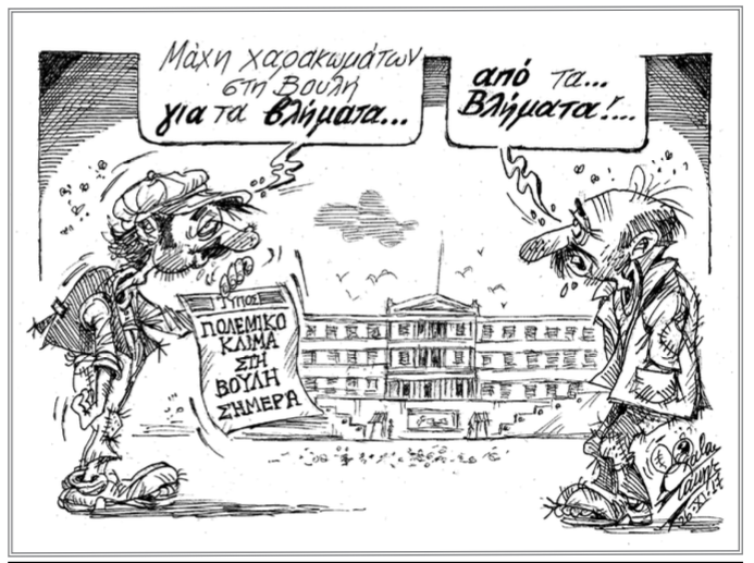 Σκίτσο του Τάκη Χάλαρη με θέμα: «Πολεμικό κλίμα»