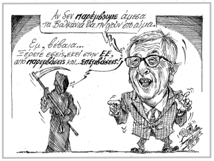 Σκίτσο του Τάκη Χάλαρη με θέμα: "Βόμβα Γιούνκερ"