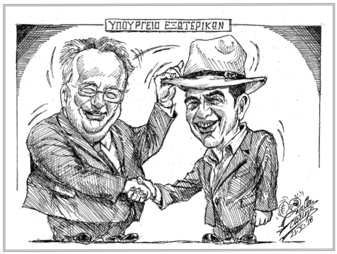 Σκίτσο του Τάκη Χάλαρη με θέμα: "Παράδοση - Παραλαβή"