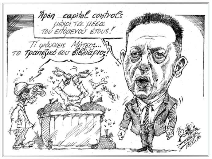 Σκίτσο του Τάκη Χάλαρη με θέμα: "Capital controls"