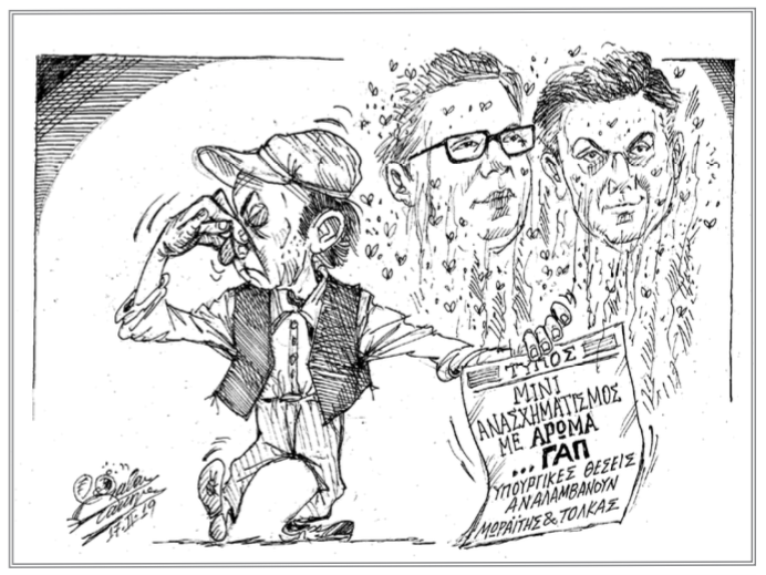 Σκίτσο του Τάκη Χάλαρη με θέμα: "Περί ανασχηματισμού"