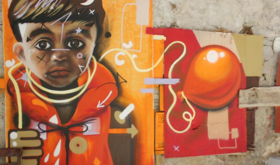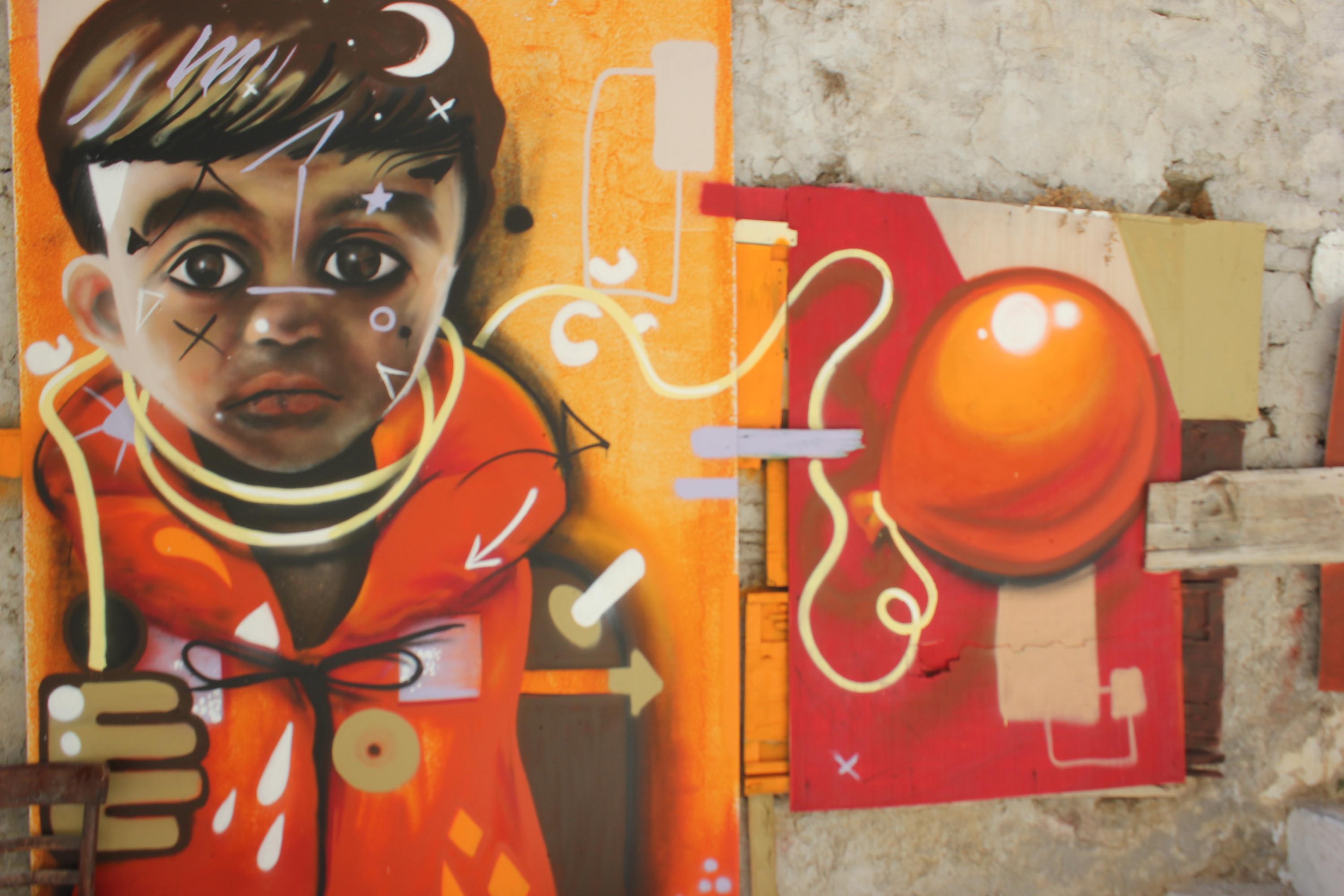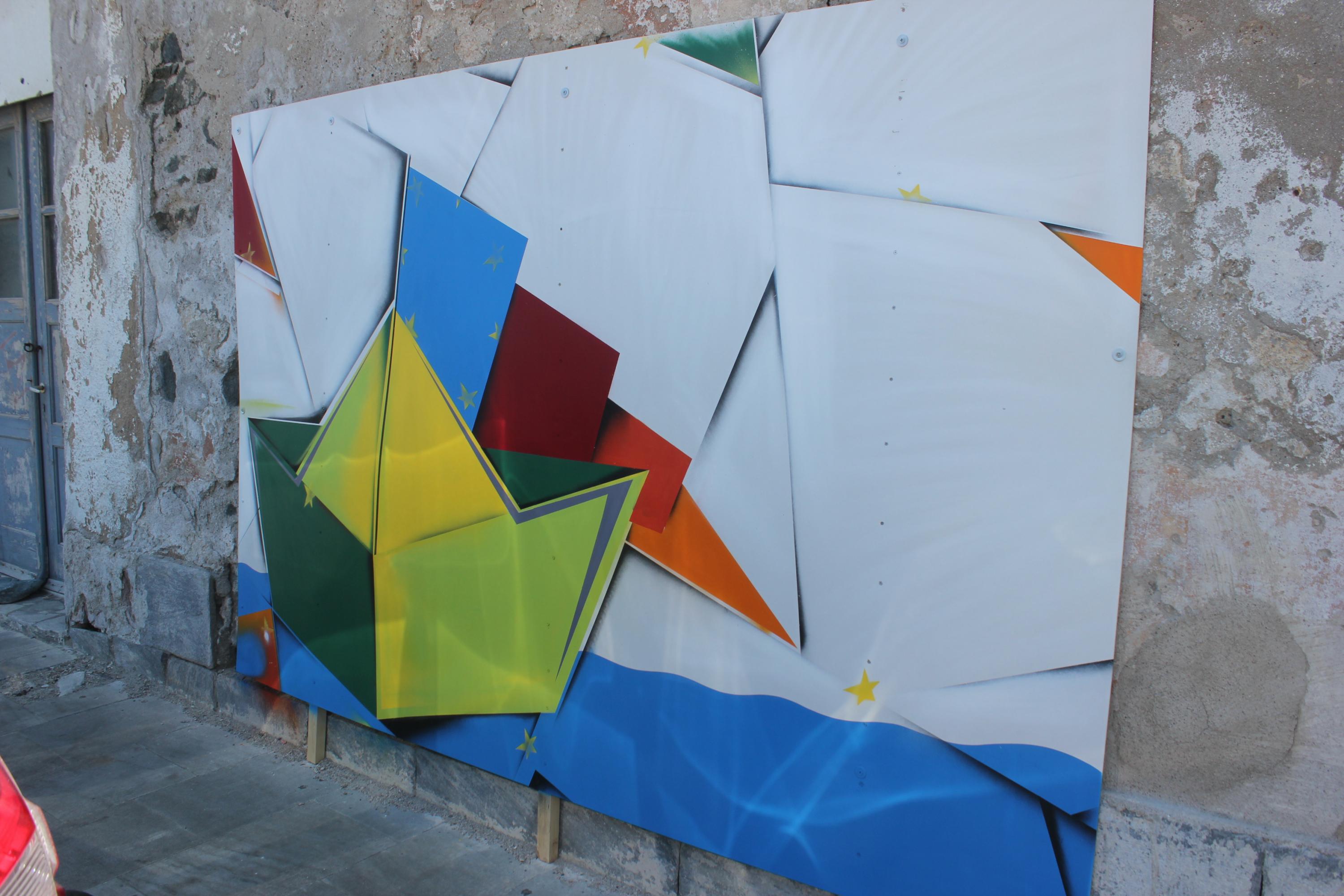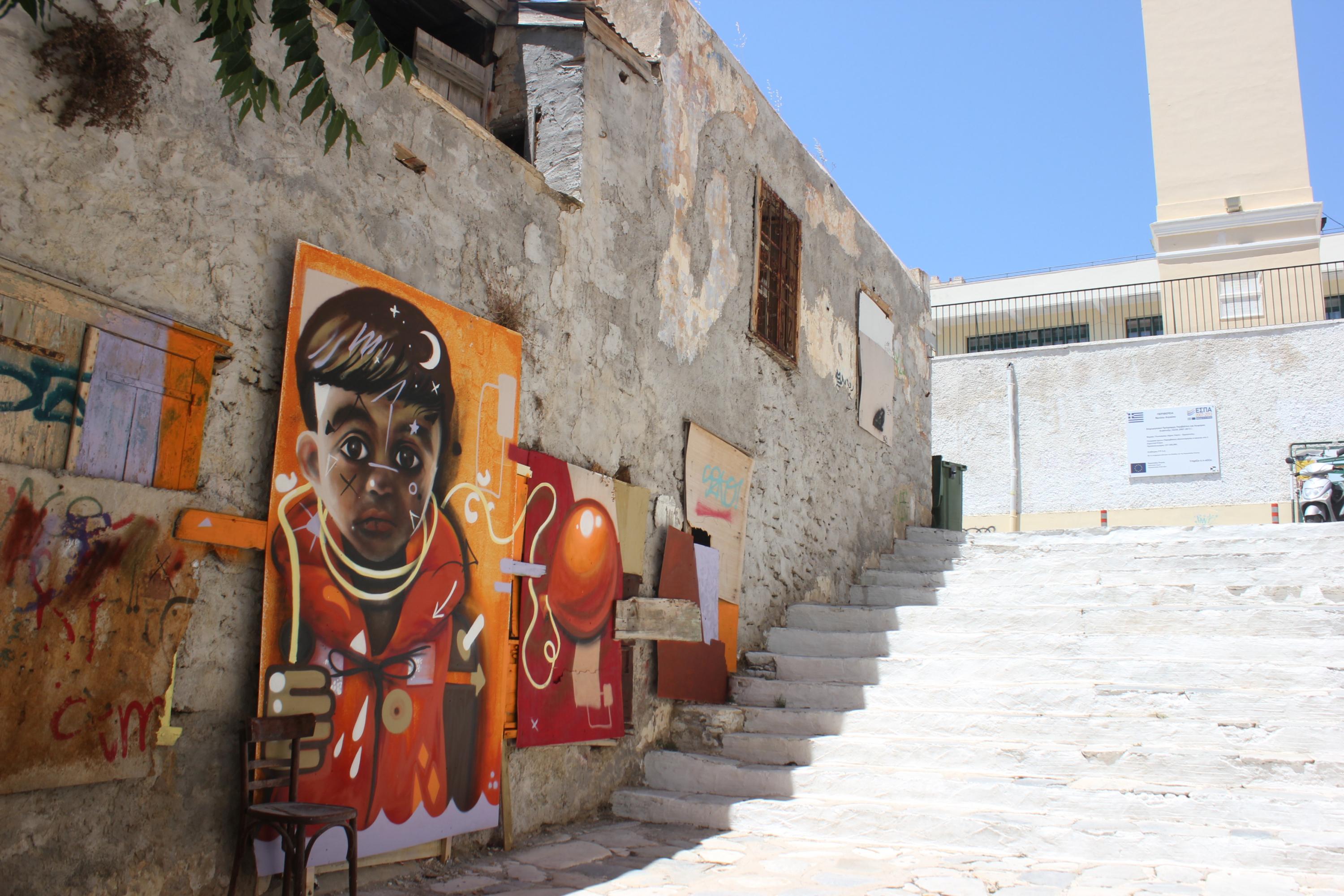 Από την Τρίτη 5 Ιουλίου, τρία graffiti που πραγματεύονται τη διάβαση στην Ευρώπη των ημερών μας συμβάλλουν στην ανάπτυξη ενός δημόσιου διαλόγου μεταξύ της τέχνης του δρόμου και της τοπικής κοινωνίας της Σύρου με θέμα το προσφυγικό. Τα έργα αυτά δημιουργήθηκαν σταδιακά σε τρία σημεία της Ερμούπολης, στο Χειμερινό Κινηματογράφο Παλλάς, στο Ρολόι του 1ου Δημοτικού Σχολείου Ερμούπολης και στο Λιμάνι απέναντι από το Ξενοδοχείο Ερμής.