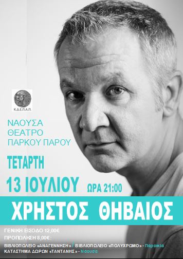 Μετά από περισσότερες από 200 παραστάσεις του εξαιρετικά επιτυχημένου «Εννιά και Πέντε» μαζί με το Βασίλη Παπακωνσταντίνου και Οδυσσέα Ιωάννου, ο Χρήστος Θηβαίος μαζεύει την μπάντα των «Πέτρινων Κήπων» και επισκέπτεται την Πάρο στις 13 του Ιούλη στο ΠΑΡΚΟ ΠΑΡΟΥ, για μία αξέχαστη συναυλία.