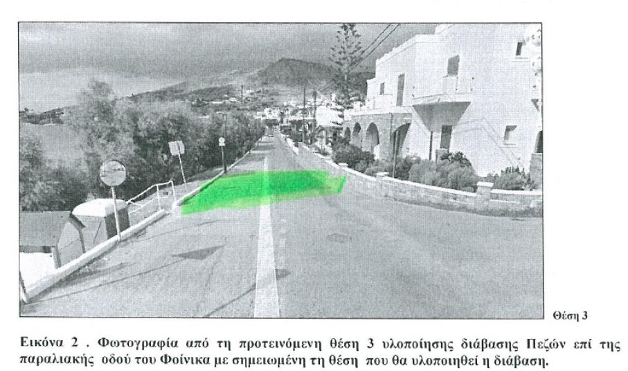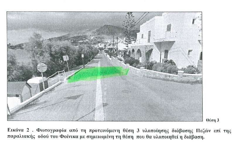 Ειδικότερα, στην τεχνική έκθεση τεκμηριώνεται με σαφήνεια η αναγκαιότητα λήψης μέτρων, αφού μετά τη σχετική αυτοψία της Τεχνικής Υπηρεσίας, διαπιστώθηκε ότι, “στη συγκεκριμένη περιοχή, υπάρχει αυξημένη κίνηση πολιτών ιδιαίτερα τους θερινούς μήνες που χρειάζεται να διασχίσουν κάθετα την παραλιακή οδό του Φοίνικα λόγω ύπαρξης περιοχής κολύμβησης, εμπορικών και ξενοδοχειακών επιχειρήσεων”.