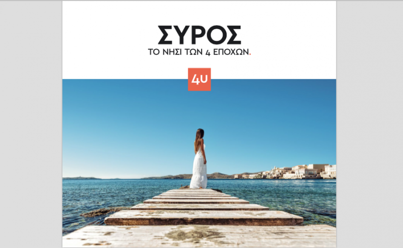Στη δημιουργία νέου τουριστικού εντύπου προβολής της Σύρου θα προχωρήσει η Δημοτική Αρχή τον Σεπτέμβριο, με τον δήμαρχο, Γιώργο Μαραγκό να γνωστοποιεί πως θα απευθύνει ανοικτή δημόσια πρόσκληση για τη σχεδίασή του, αφότου ολοκληρωθεί η διανομή του υπάρχοντος, με τίτλο “4 εποχές”, το οποίο και θα επανεκτυπωθεί ωστόσο, για να καλύψει τις τρέχουσες ανάγκες του Δήμου Σύρου – Ερμούπολης έως το τέλος της καλοκαιρινής περιόδου.