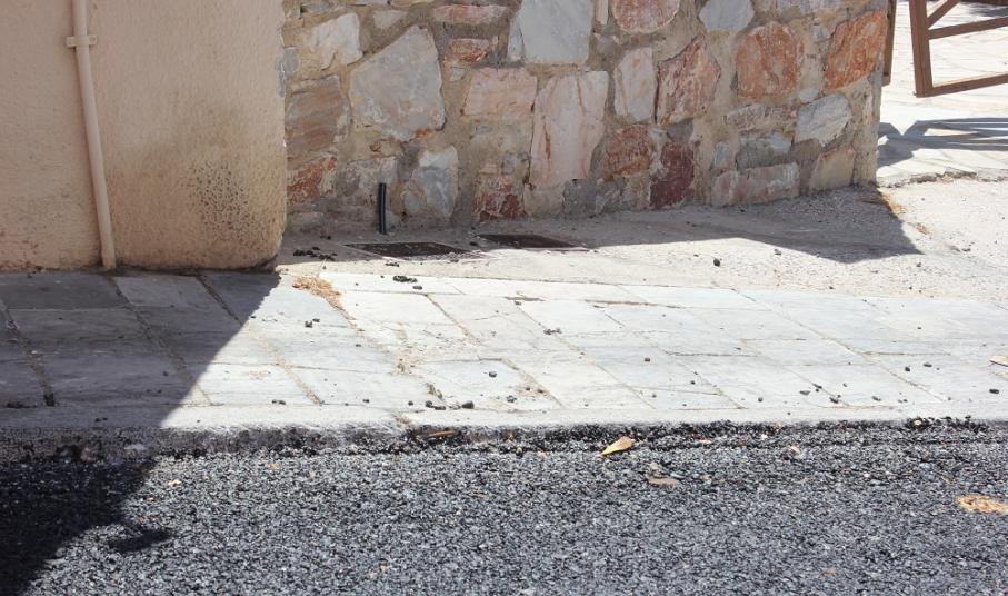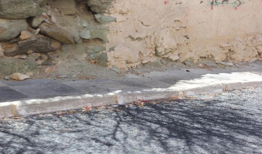 Η – σε πολλά σημεία – σχεδόν ανύπαρκτη υψομετρική διαφορά του πεζοδρομίου από το οδόστρωμα προκαλεί ανησυχία σχετικά με το ενδεχόμενο πρόκλησης ατυχήματος αν κάποιο δίκυκλο ή όχημα παρεκκλίνει της πορείας του.