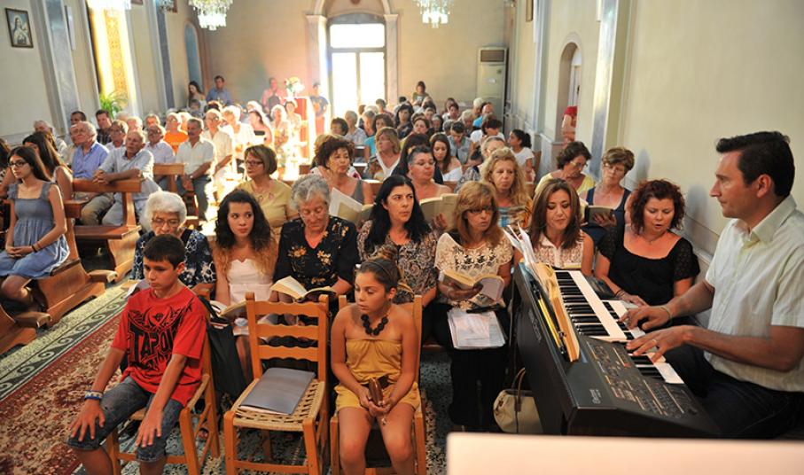 Η Εκκλησία ήταν ασφυκτικά γεμάτη από ενορίτες αλλά και λαϊκούς από όλες τις Ενορίες της Σύρου. Η Χορωδία της Ενορίας έψαλλε ,όπως πάντα, με επιτυχία τους ύμνους της Θείας Λειτουργίας.
