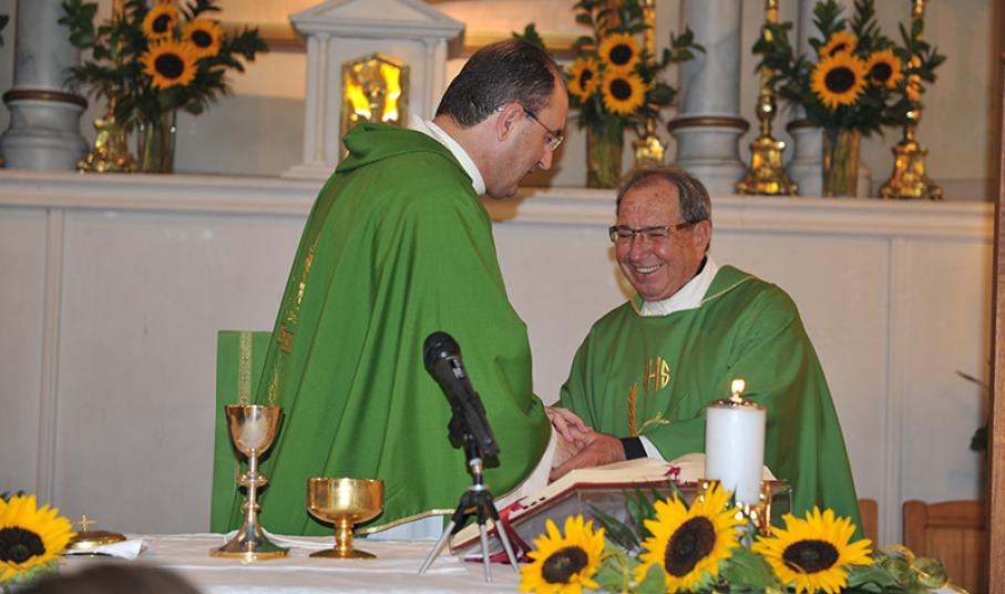 Στην τελετή ανάληψης καθηκόντων του νέου Εφημερίου Αγίου Παντελεήμονα Φοίνικα π. Ιωάννη Μαραγκού από τον απερχόμενο Εφημέριο π. Πέτρο Πρίντεζη παρέστη την Κυριακή 10 Ιουλίου 2016 στον Ιερό Ναό του Αγίου Παντελεήμονα στο Φοίνικα ο Σεβασμιώτατος Επίσκοπος Σύρου και Αποστολικός Τοποτηρητής Θήρας-Κρήτης π. Πέτρος Στεφάνου.