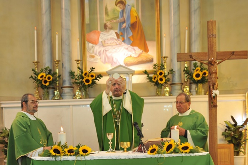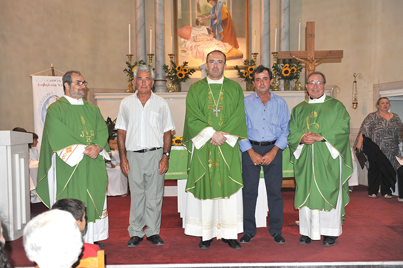 Η τελετή άρχισε με Αρχιερατικό Συλλείτουργο στο οποίο προΐστατο ο Σεβασμιώτατος και συλλειτούργησαν μαζί του οι δύο Ιερείς π. Γιάννης και π. Πέτρος.