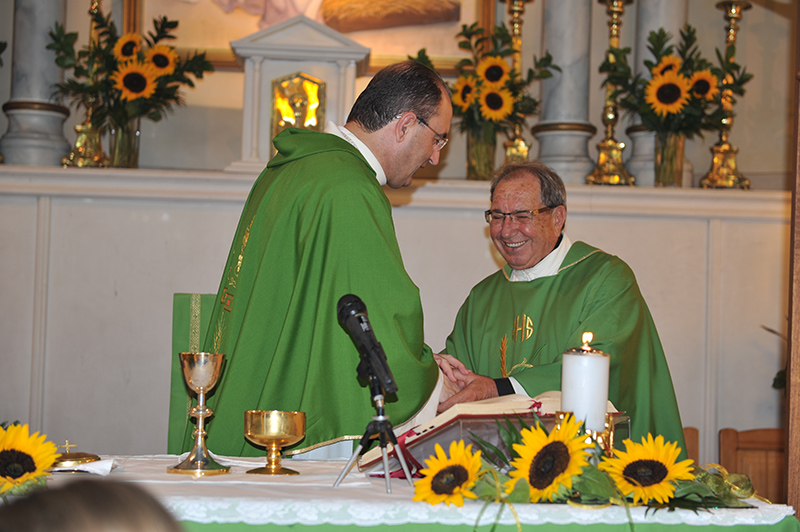 Όλοι εμείς οι ενορίτες του Αγίου Παντελεήμονα σας ευχαριστούμε πολύ μέσα από τα βάθη της καρδιάς μας για όσα πολλά και ανεκτίμητα μας δώσατε, σας υποσχόμαστε ότι θα προσπαθήσουμε να πορευόμαστε στο δρόμο της ζωής με τα Χριστιανικά Ιδανικά που εσείς μας δείξατε και σας ευχόμαστε ο Θεός Πατέρας ,που τόσο αγαπάτε, να σας δίνει Υγεία και Δύναμη, να συνεχίσει να είναι δίπλα σας κάθε ώρα και στιγμή, ώστε να οδηγεί και να στηρίζει το Θεάρεστο έργο της Ιερατικής ζωής σας.