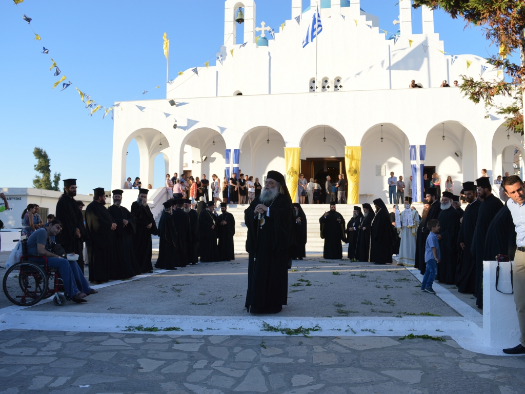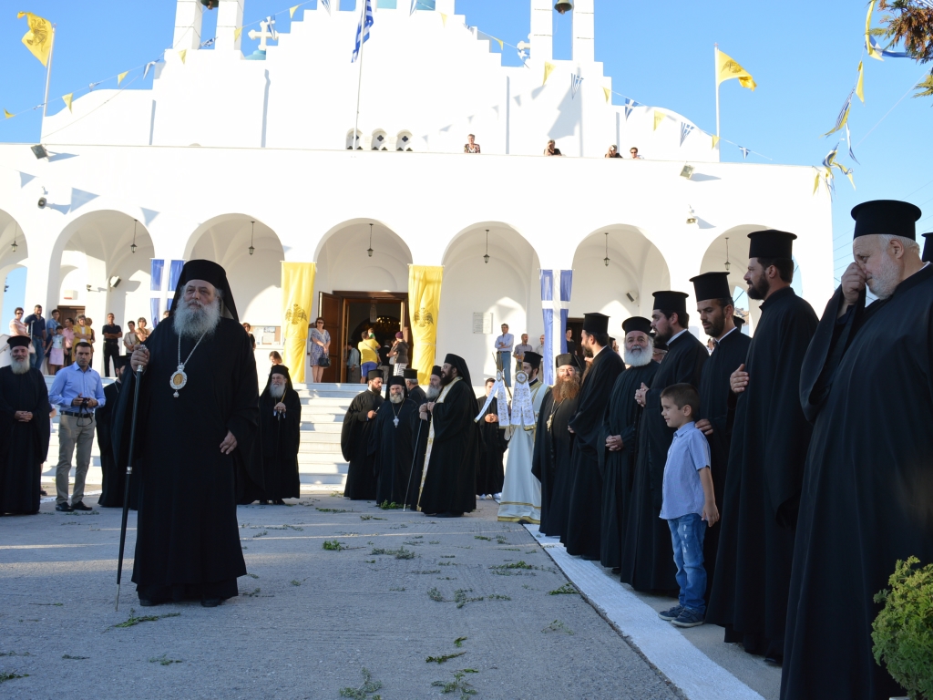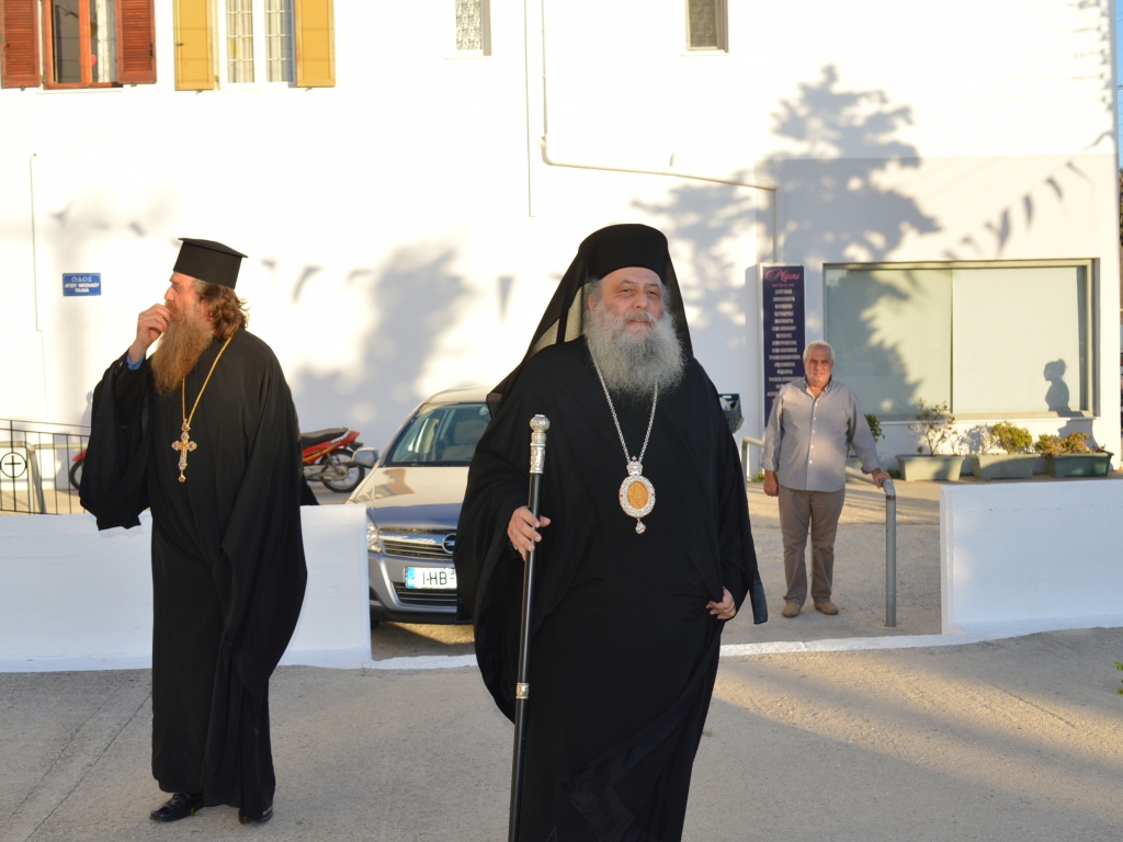 Αμέσως μετά ξεκίνησε ο Μέγας Πανηγυρικός Αρχιερατικός Εσπερινός, στον οποίο χοροστάτησε ο Θεοφιλέστατος Επίσκοπος Κερνίτσης, κ. Χρύσανθος, συμπαραστατούμενος, υπό των ενδημούντων Σεβασμιωτάτων Μητροπολιτών Υδρας Σπετσών & Αιγίνης κ. Εφραίμ, Θηβών και Λεβαδείας κ. Γεωργίου, Ζακύνθου κ. Διονυσίου καί του Σεβασμιωτάτου Ποιμενάρχου, Μητροπολίτου Παροναξίας κ. Καλλινίκου