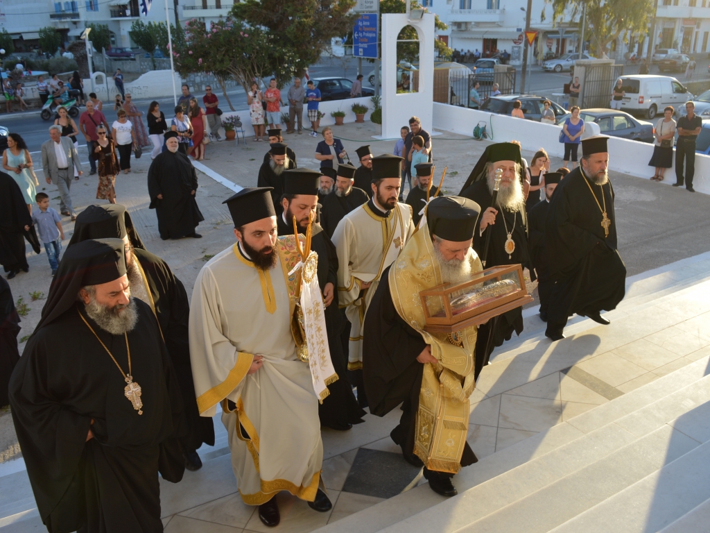 Με τη παρουσία πέντε Μητροπολιτών πραγματοποιήθηκε την Τετάρτη, ο Μέγας Πανηγυρικός Αρχιερατικός Εσπερινός στον Ιερό Ναό Αγίου Νικοδήμου στη Χώρα Νάξου - Υποδοχή της Τιμίας Χειρός του Αγίου Νεκταρίου.