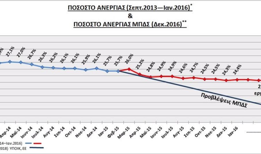 Έτσι, τον Ιανουάριο του 2015 η ανεργία είχε ήδη πλέον υποχωρήσει στο 25,7%, δηλαδή είχε επιτευχθεί μείωση 2,2%!