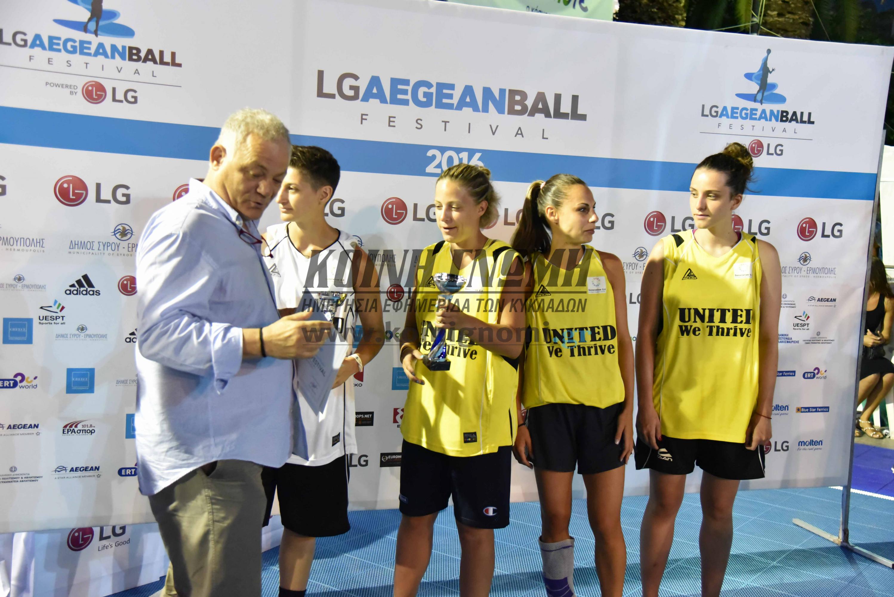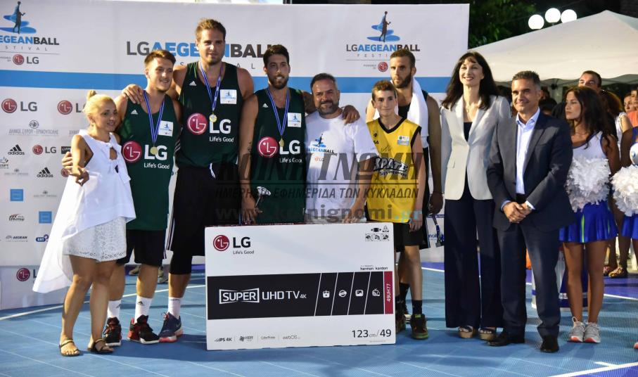 Ολοκληρώθηκε με τον ιδανικότερο τρόπο το 1ο 3on3 LG Aegeanball Festival με τους 3 Cavalleros να γράφουν ιστορία κατακτώντας το πρώτο πρωτάθλημα. Η τελευταία ημέρα των αγώνων επιφύλαξε στους 4000 και πλέον φίλους του αθλήματος που βρέθηκαν στην πλατεία Μιαούλη, εντυπωσιακά παιχνίδια, μοναδικές "μονομαχίες" αφού όλες οι ομάδες ήθελαν τον τίτλο και πάλεψαν με όλες τους τις δυνάμεις. Η παρέα του Νίκου Παππά και του Γιώργου Μπόγρη επικράτησαν στον μεγάλο τελικό της διοργάνωσης με 14-16, της ομάδας LG Warriors του Γιώργου Πρίντεζης και του Γιάννη Μπουρούση. Οι δύο ομάδες έφτασαν στον τελικό, αφού πρώτα είχαν επικρατήσει στους ημιτελικούς των Heroes Cosmote (16-22) και Ekoracing Rockets (15-17) αντίστοιχα. Ο τελικός ήταν αμφίρροπος αφού ήταν ισόπαλος μέχρι τα τελευταία δευτερόλεπτα. Ένα δίποντο (έξω από την γραμμή των 7,25) του Γιώργου Μπόγρη ήταν αυτό που άλλαξε τις ισορροπίες και έδωσε τη νίκη στους 3 Cavalleros.