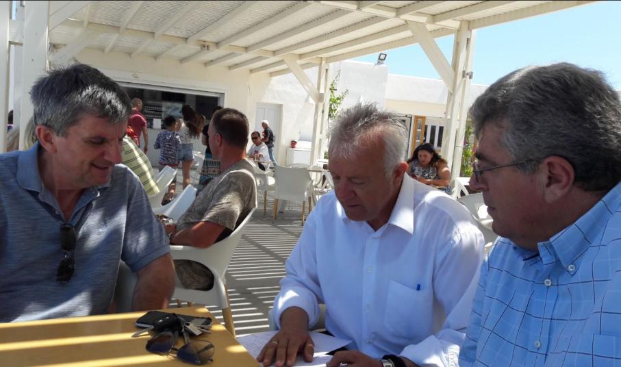 Στην Σαντορίνη ο Αντιπεριφερειάρχης είχε συνεργασία με τον Πρόεδρο της Ένωσης Συνεταιρισμών Σαντορίνης και Αντιδήμαρχο του Δήμου Σαντορίνης κο Μάρκο Καφούρο και με τον Διευθυντή της κο Ματθαίο Δημόπουλο.