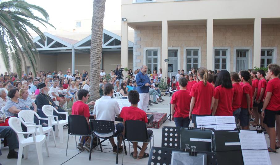 Η συναυλία πραγματοποιήθηκε στο πανέμορφο προαύλιο του Καθολικού Ησυχαστηρίου "Παναγία της Ελπίδας" της Ιεράς Μονής των Αδελφών του Ελέους, παρουσία του Σεβασμιωτάτου Μητροπολίτη Σύρου κ. Δωροθέου Β’ και πλήθους κόσμου.