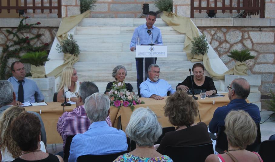 Με χαρά, αλλά και ιδιαίτερη συγκίνηση ο Δήμος Σύρου – Ερμούπολης καλωσόρισε το κοινό στην έναρξη των επετειακών εκδηλώσεων για τα 100 χρόνια της Έπαυλης, που σήμερα αποτελεί τον μοναδικό χώρο φιλοξενίας πολιτιστικών εκδηλώσεων εκτός της Ερμούπολης.