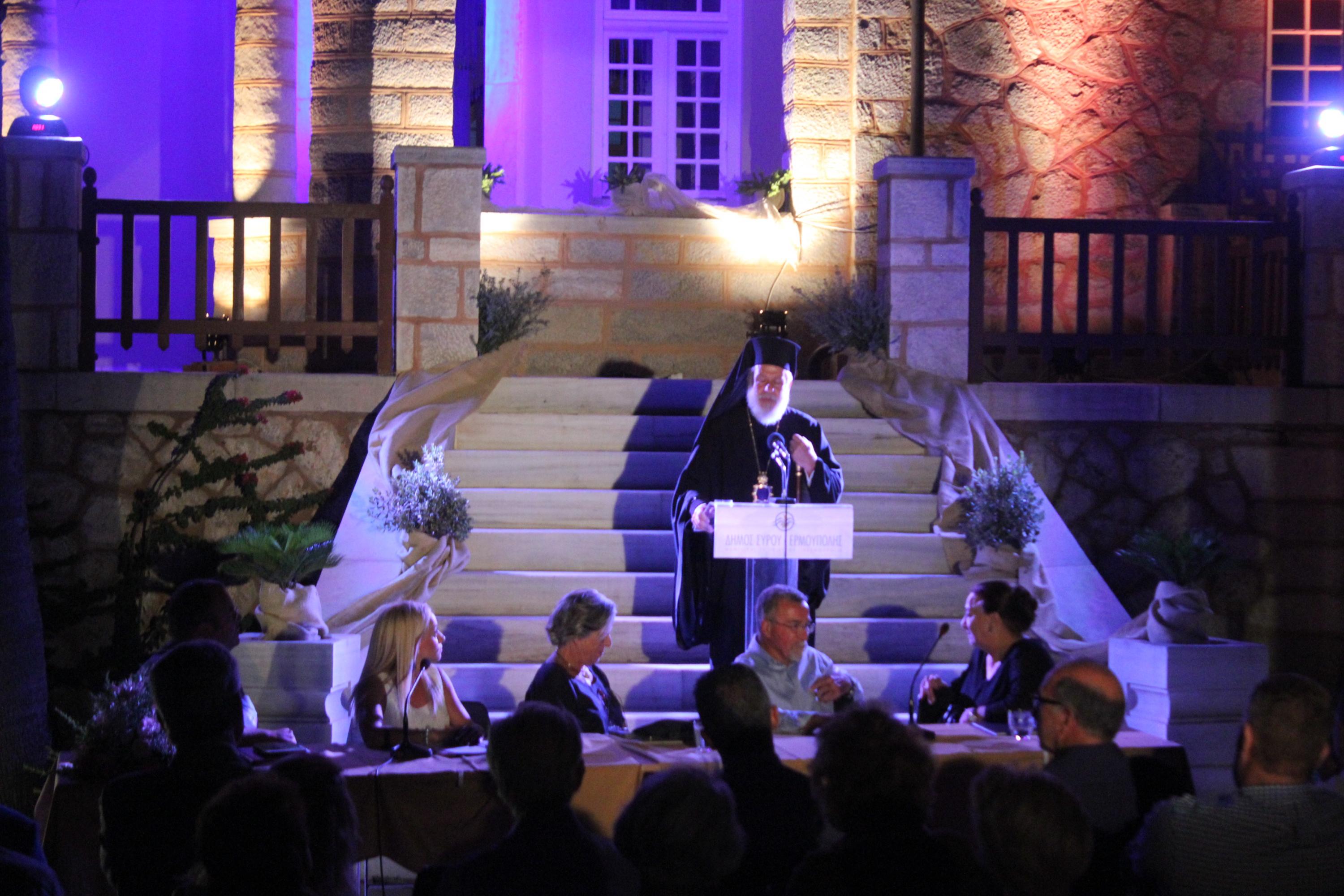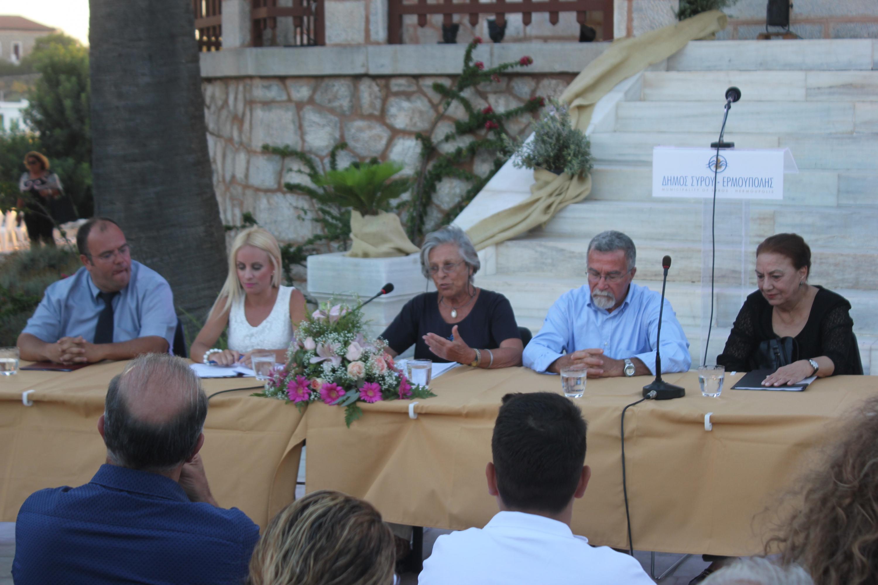 Στην εκδήλωση παρευρέθηκαν μεταξύ άλλων, ο Σεβασμιώτατος Μητροπολίτης Σύρου κ. Δωρόθεος Β’, ο Αντιπεριφερειάρχης Κυκλάδων Γιώργος Λεονταρίτης, ο τ. Δήμαρχος Ποσειδωνίας Δημήτρης Ρούσσος, ο Δήμαρχος Σύρου – Ερμούπολης Γιώργος Μαραγκός, εκπρόσωποι της τοπικής αυτοδιοίκησης α’ και β’ βαθμού, αλλά και πλήθος κόσμου.