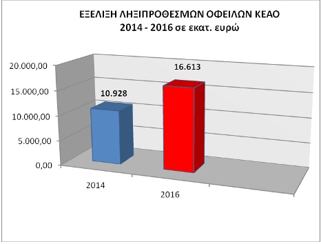 Τα στοιχεία της 2ης τριμηνιαίας έκθεσης προόδου εργασιών του ΚΕΑΟ έτους 2016, δυστυχώς αποτυπώνουν τις αρνητικές εξελίξεις και στο πεδίο της διευθέτησης των ληξιπροθέσμων στα ασφαλιστικά ταμεία, αλλά και την αδυναμία της πολυδιαφημισμένης -από την κυβέρνηση- ρύθμισης των 100 δόσεων να ανταποκριθεί στις απαιτήσεις.