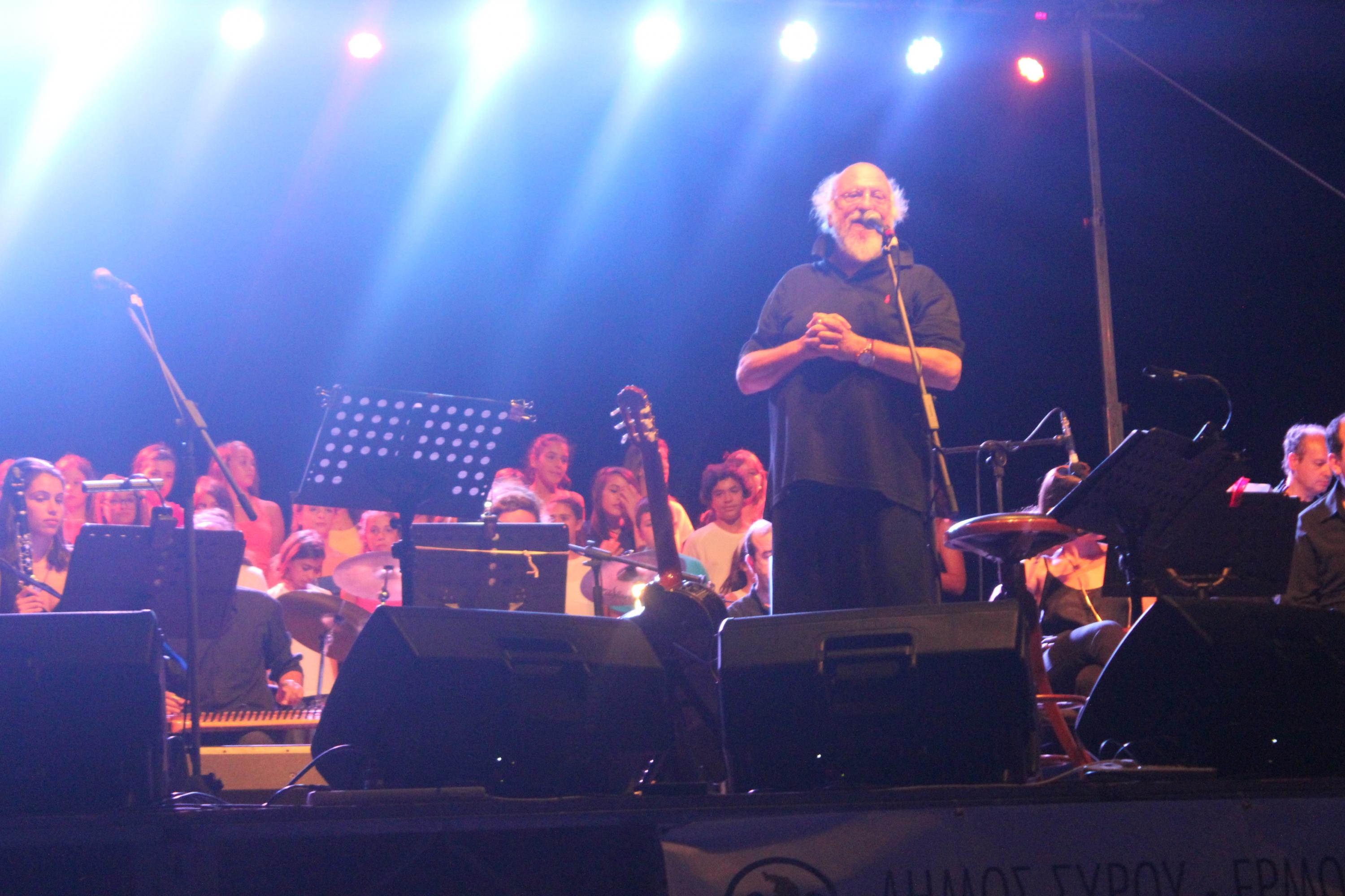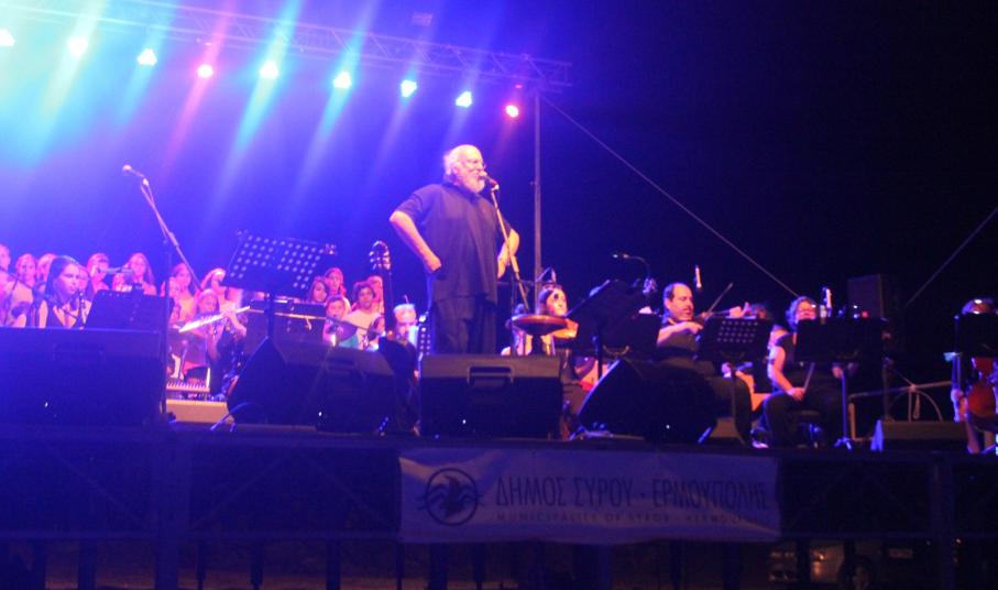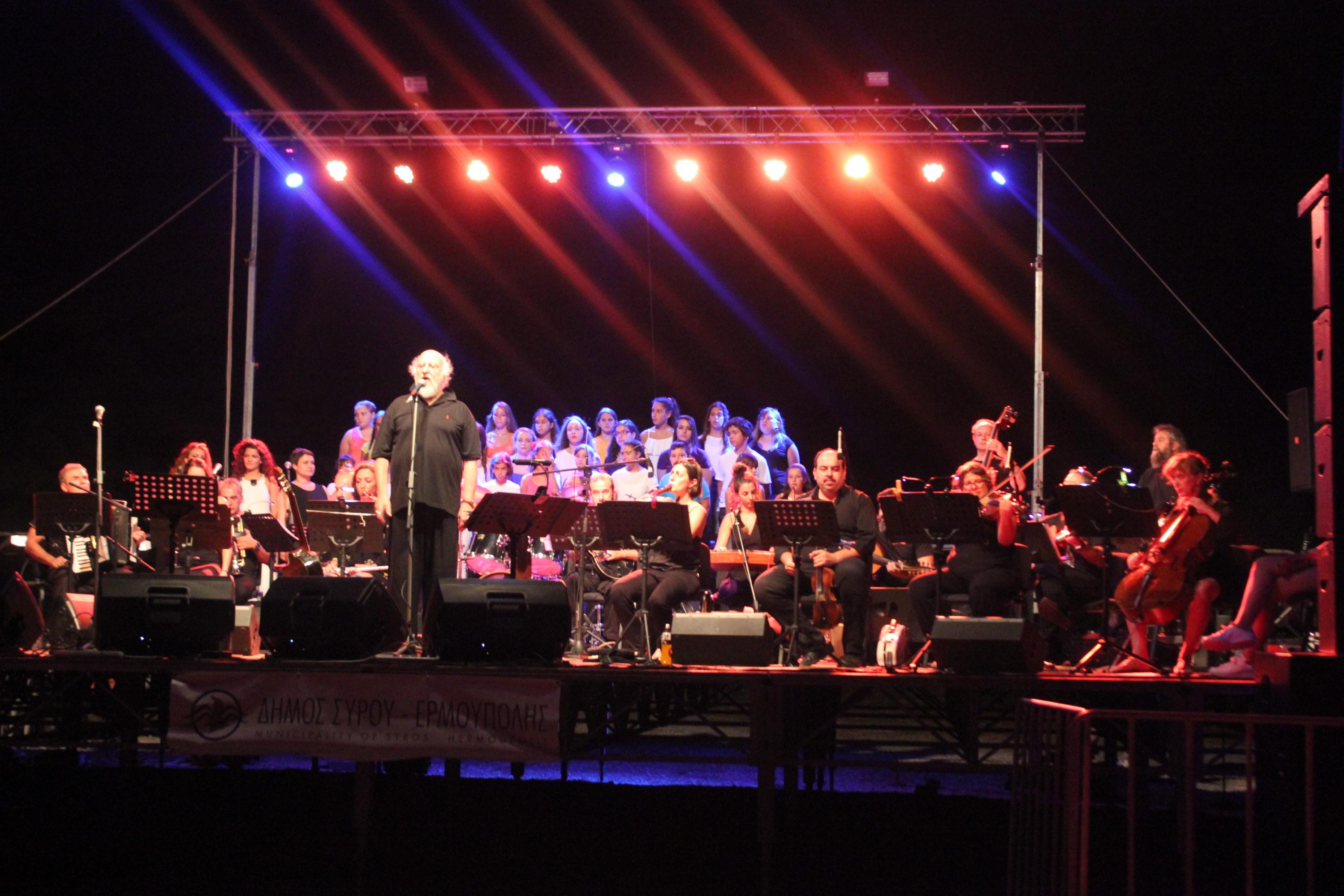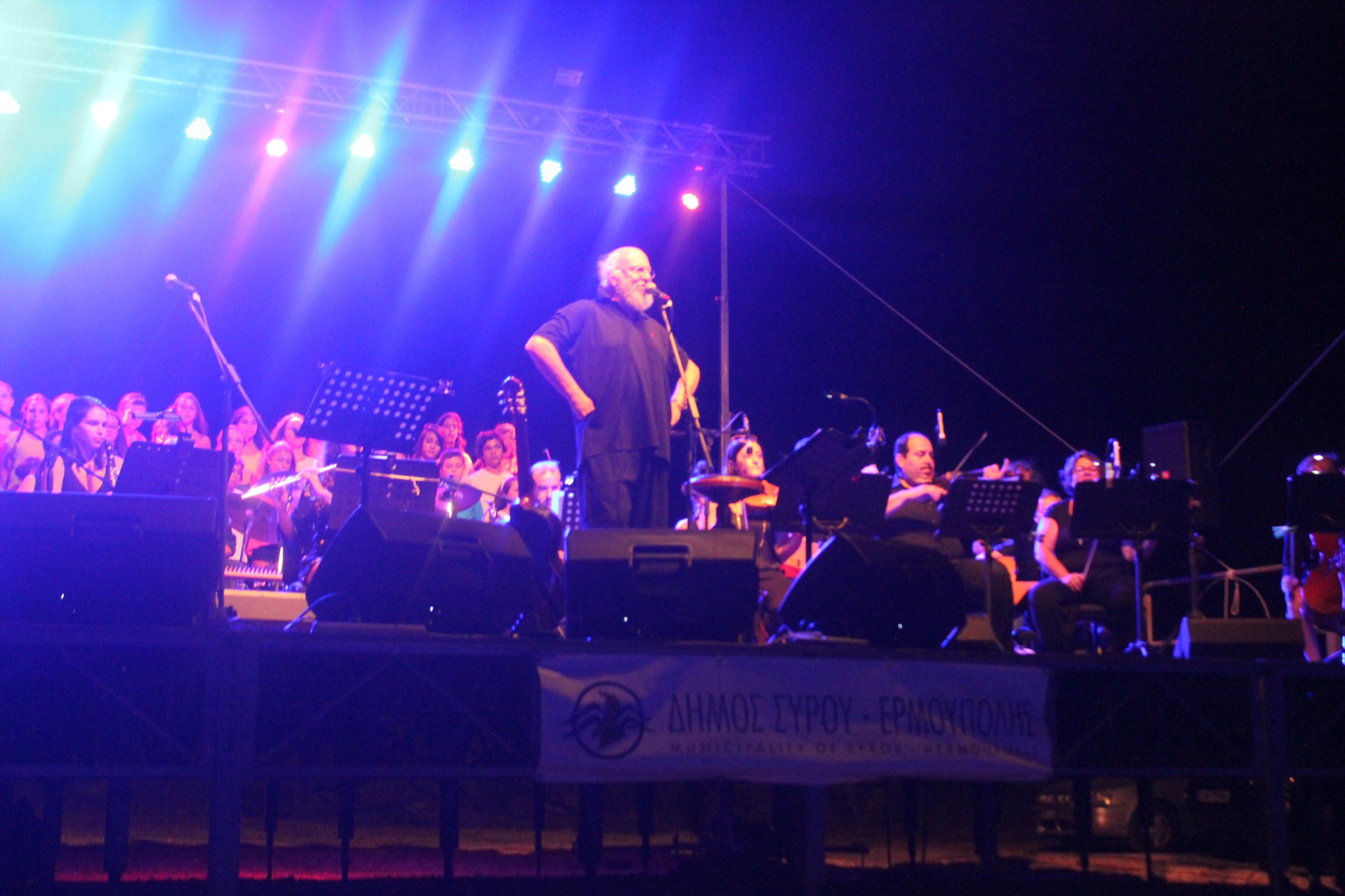 Στο πλαίσιο του προγράμματος «Σύρος – Πολιτισμός 2016», η πρωτεύουσα των Κυκλάδων υποδέχτηκε για μία ακόμη φορά τον αγαπημένο τραγουδοποιό, ο οποίος πριν από δύο χρόνια είχε ενώσει ξανά τις δυνάμεις του με τους Συριανούς μουσικούς και τραγουδιστές για δύο μοναδικές - και sold out- συναυλίες στο Θέατρο Απόλλων.