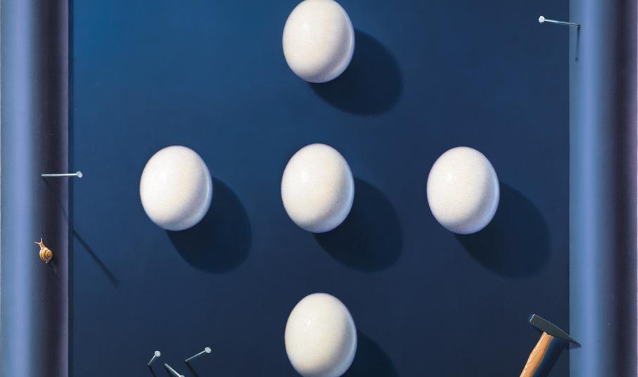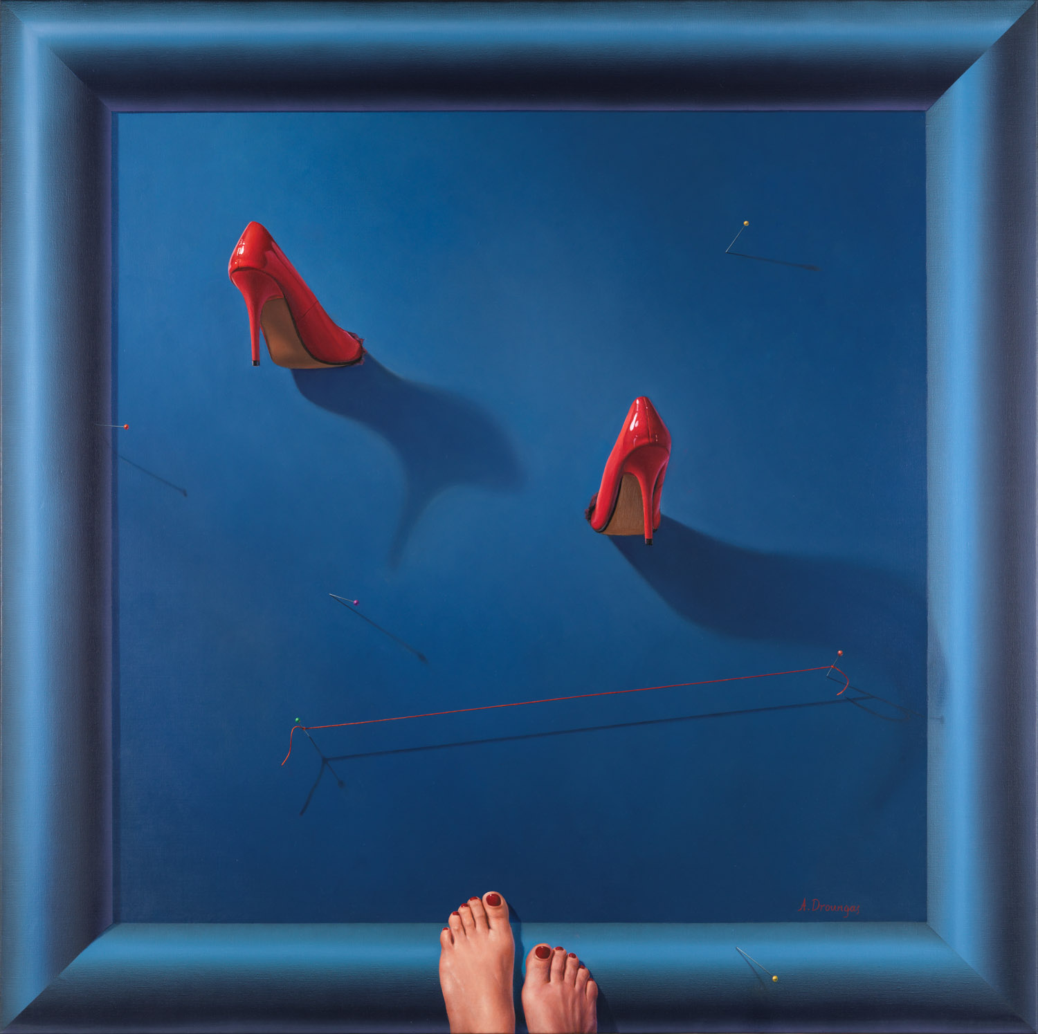 «Η έννοια "concept", είναι ο κύριος στόχος του πίνακα» λέει ο Αχιλλέας Δρούγκας. «Η χρωματική αρμονία, η σύνθεση, η "ζωγραφικότητα" δεν είναι ο κύριος σκοπός αυτής της δουλειάς. Η τεχνική της οφθαλμαπάτης επιτείνεται από μια ζωγραφισμένη κορνίζα που δημιουργεί την ψευδαίσθηση της αληθινής και έτσι δημιουργείται ένας καθορισμένος χώρος για να αναπτυχθεί η ιδέα. Το τελικό αποτέλεσμα μοιάζει περισσότερο με τρισδιάστατη κατασκευή.
