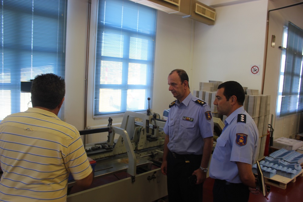 Συνοδευόμενος από τον πυραγό, Ιάκωβο Τζώρτζη επισκέφθηκε πρωτίστως τον χώρο του τυπογραφείου όπου και είχε τη δυνατότητα να ενημερωθεί για όλα τα στάδια παραγωγής εντύπων και να συνομιλήσει με τον ιδιοκτήτη, Γ. Βακόνδιο, από τον οποίο έλαβε λεπτομερή πληροφόρηση σχετικά με την τεχνολογική εξέλιξη στην οποία επενδύει η επιχείρηση.