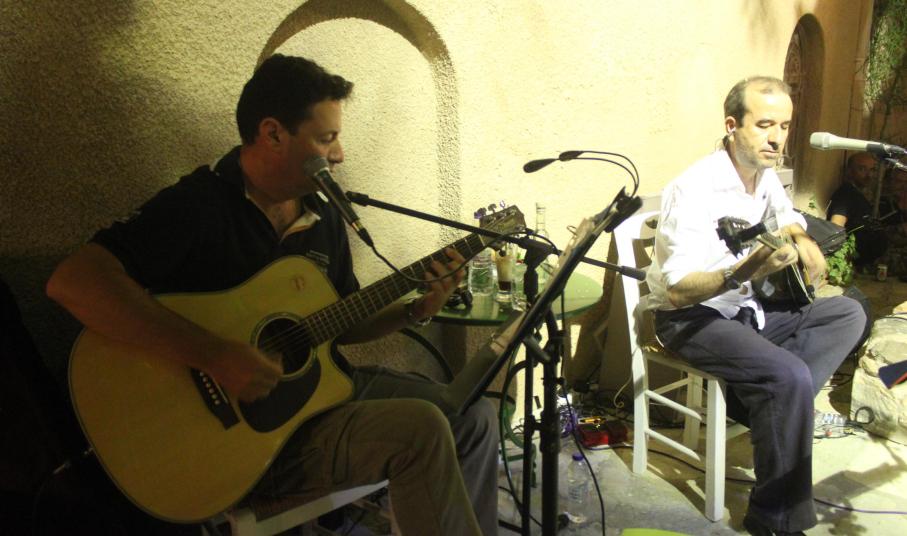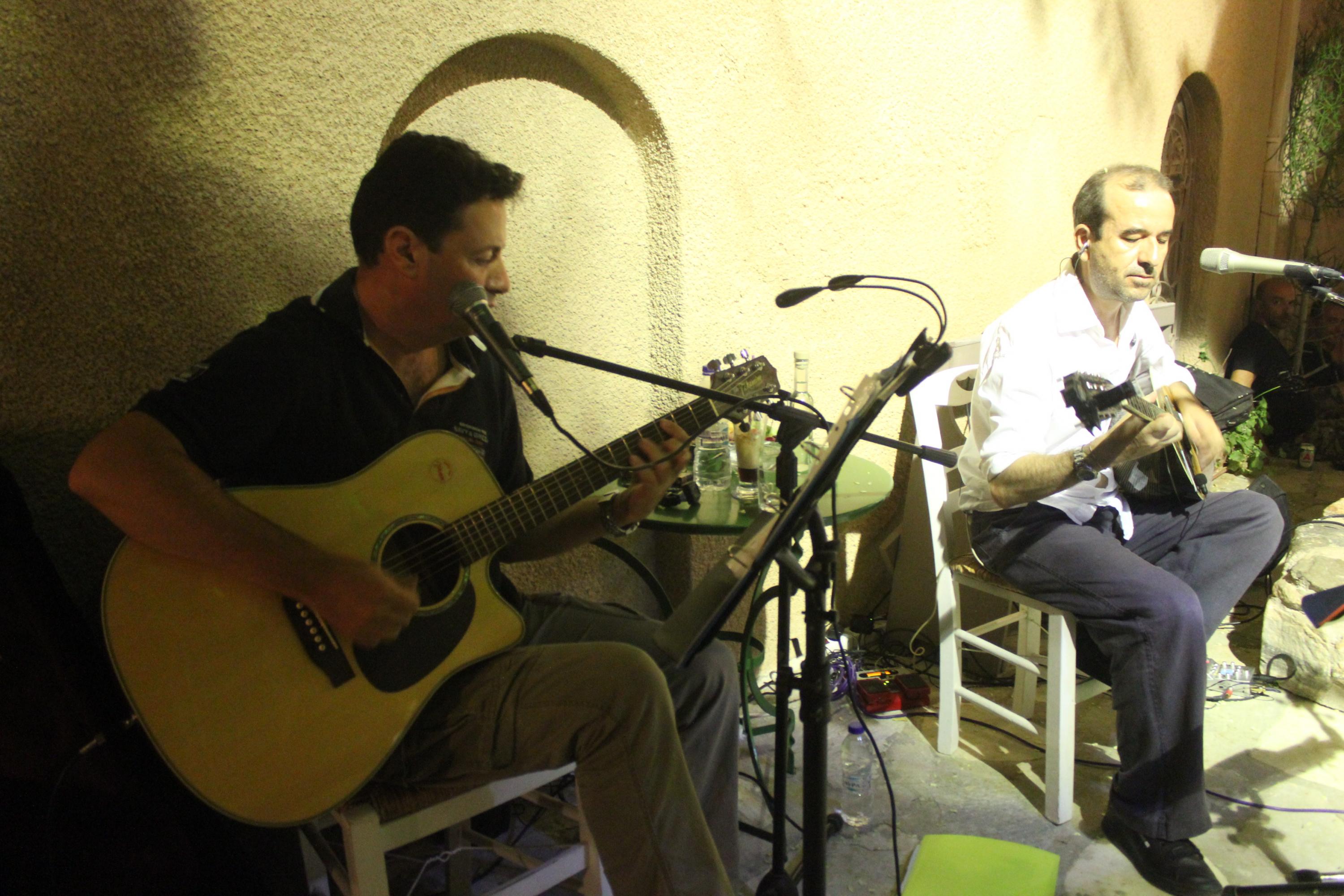 Τη βραδιά έντυσαν μουσικά ο Αντώνης Κονσολάκης στο μπουζούκι και ο Γρηγόρης Λούβαρης στην κιθάρα.