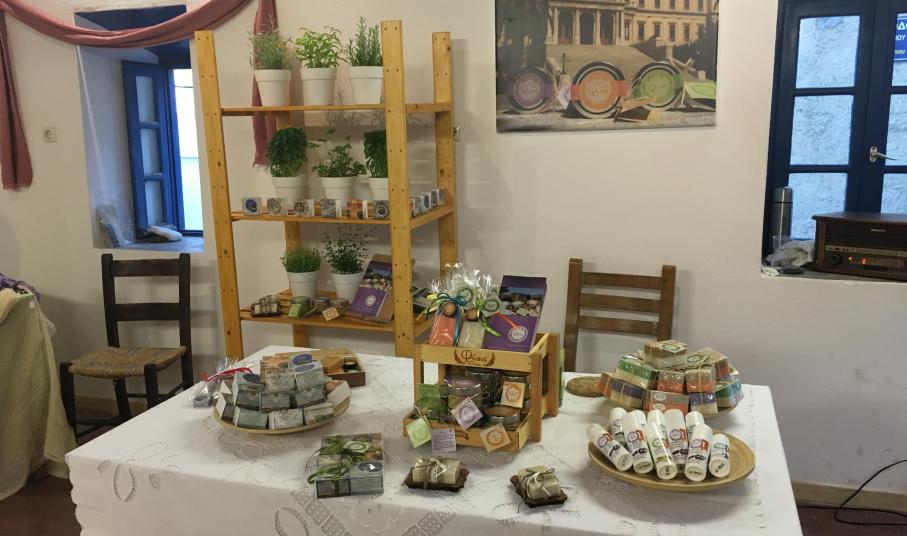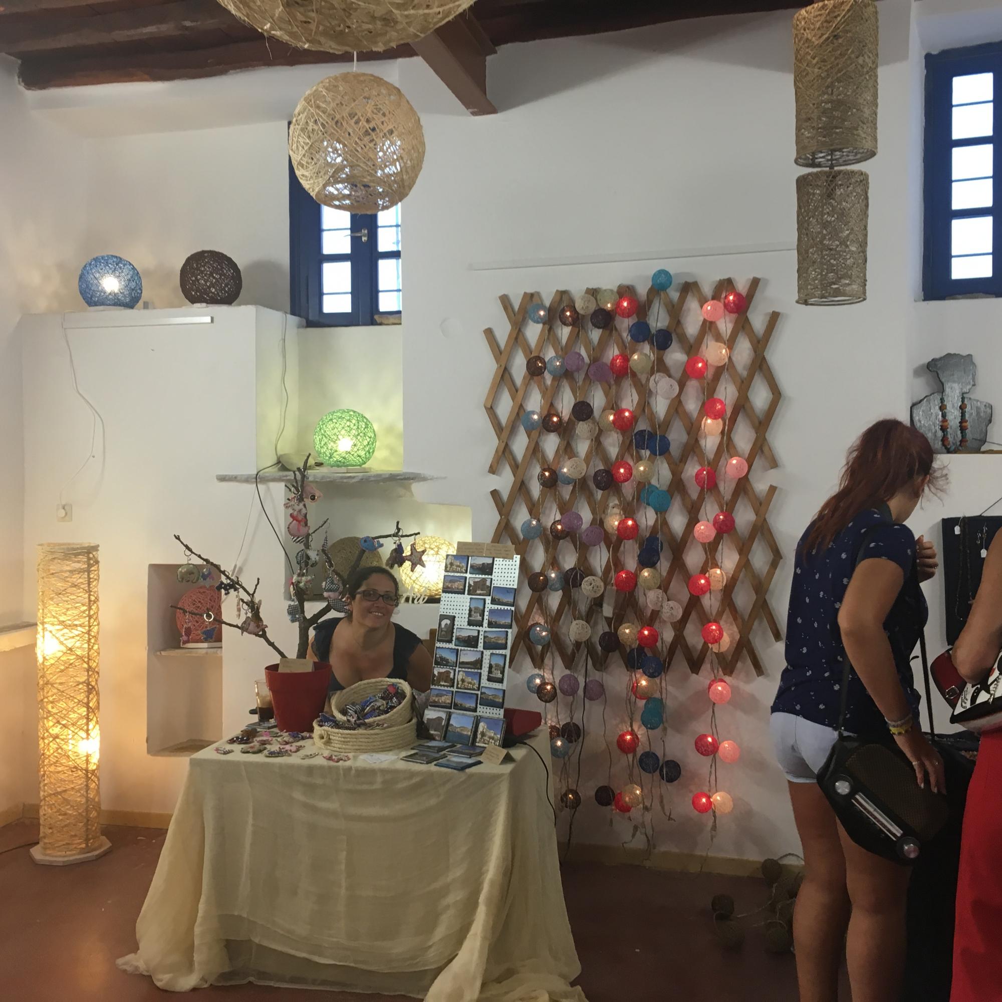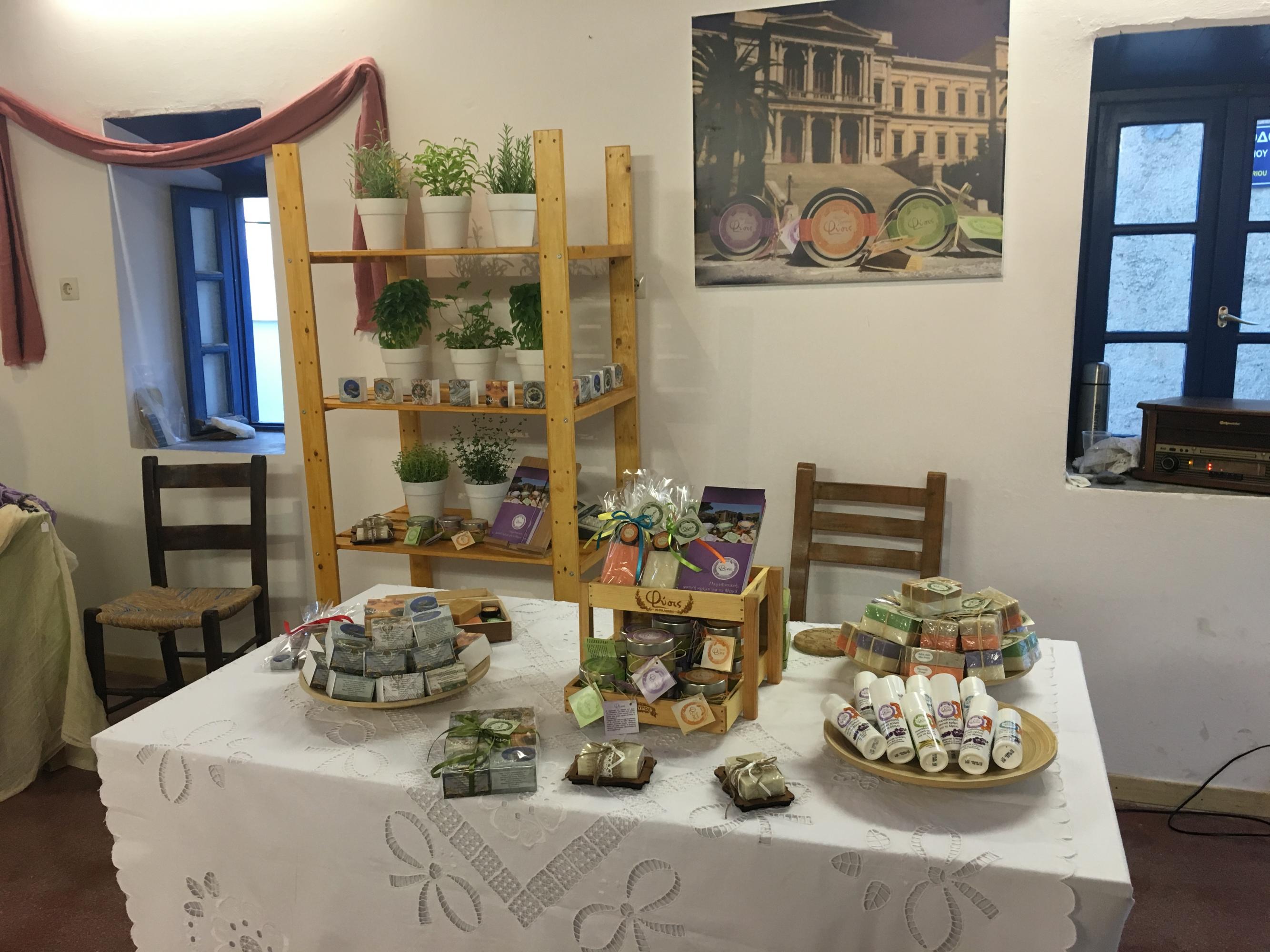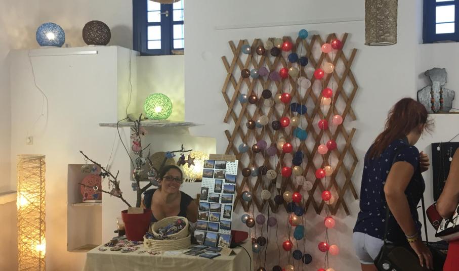 Η έκθεση περιλαμβάνει φυτικά καλλυντικά, κηραλοιφές, κοσμήματα με πολύτιμους λίθους, κοσμήματα με μετάξι, βελονάκι και κλωστές, φωτιστικά από σκοινί, σουβέρ και μαγνητάκια με πρωταγωνίστρια τη Σύρο, αλλά και χειροποίητα σαπούνια με γάλα κατσίκας και μέλι, αιθέρια έλαια και τριαντάφυλλο.