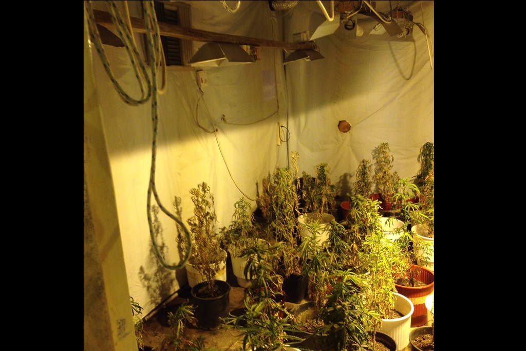Επίσης, εντοπιστήκαν στον περίβολο-κτήμα της κατοικίας δυο καλλιέργειες κάνναβης, μια υπαίθρια και μια εσωτερικού χώρου.
