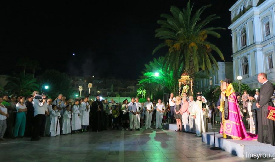 Η σπουδαία δεσποτική εορτή της Μεταμορφώσεως του Σωτήρος εορτάστηκε και φέτος με λαμπρότητα στον ομώνυμο ιστορικό Μητροπολιτικό Ιερό Ναό της Ερμουπόλεως, ο οποίος ανεργέρθηκε το 1824 από τους Μικρασιάτες, Χίους και Ψαριανούς πρόσφυγες και πρώτους οικιστές της Ερμούπολης,
