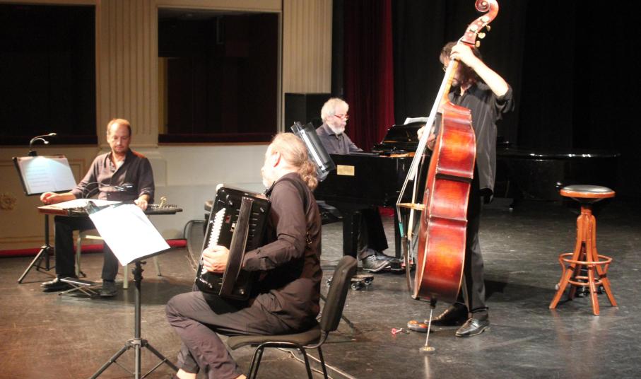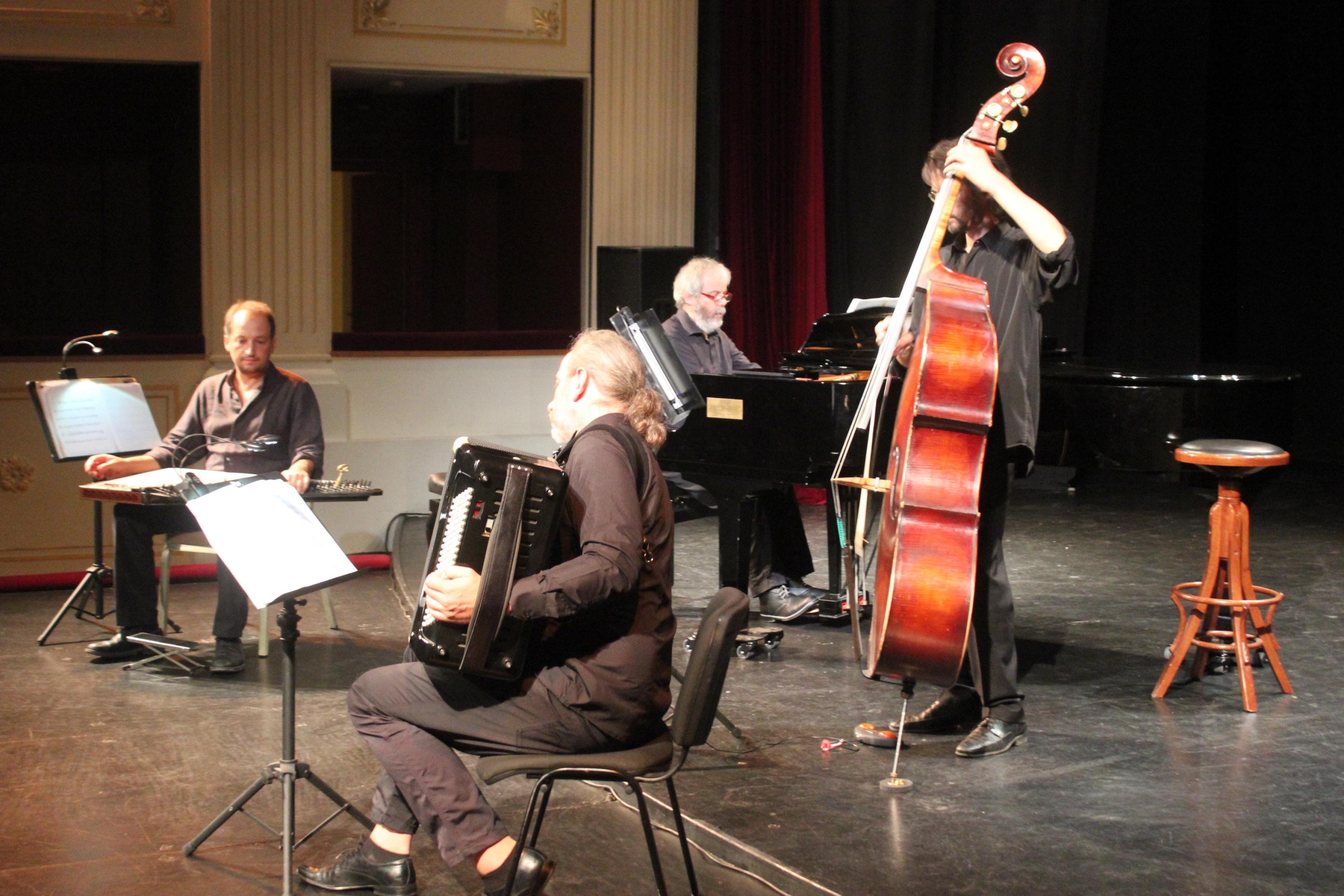 Τέσσερις Έλληνες αναγνωρισμένοι σολίστες με ανεξάρτητες αναζητήσεις στα μονοπάτια της μουσικής συναντώνται τα τελευταία χρόνια σε επίλεκτες σκηνές και φεστιβάλ για να παρουσιάσουν με τη χρήση των τεσσάρων «ετερόκλητων» οργάνων τους σε ανέκδοτο συνδυασμό πρωτότυπες μεταγραφές που αναδεικνύουν την πνευματική συγγένεια του κορυφαίου Έλληνα δημιουργού με κάποιους εμπνευσμένους επιγόνους του.